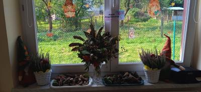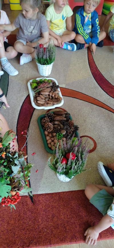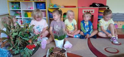 Szczególnym miejscem stał się kącik przyrodniczy – dzieci przyniosły ze sobą prawdziwe skarby natury: kolorowe liście, kasztany, gałązki i szyszki. Dzięki ich zaangażowaniu kącik zmienił się w prawdziwe, jesienne dzieło sztuki!
