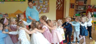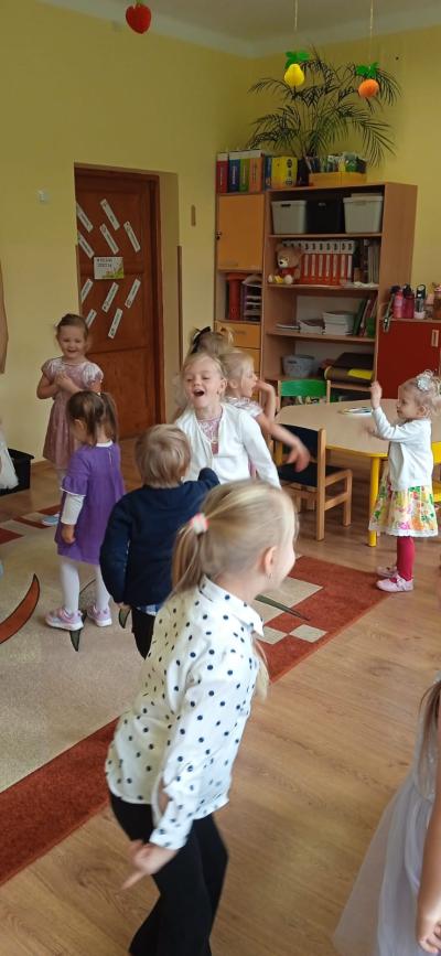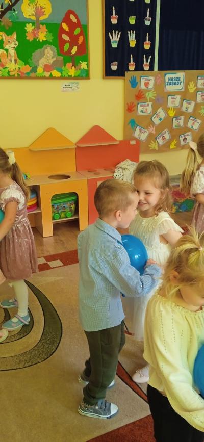 Cały dzień upłynął pod znakiem tańców, śpiewu, zabaw ruchowych oraz wspólnych gier integracyjnych. Nie zabrakło także kolorowych balonów, wesołej muzyki i uśmiechów, które nie schodziły z twarzy naszych małych bohaterów. Dzieci uczestniczyły w zabawach tematycznych, tańczyły do ulubionych przedszkolnych przebojów, a na zakończenie dnia dzieci usiadły do poczęstunku przygotowanego przez rodziców. Każdy przedszkolak otrzymał tez skromny upominek z okazji tego wyjątkowego święta.