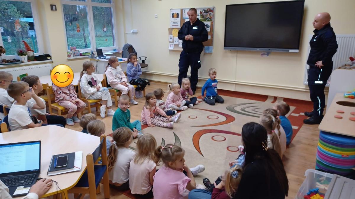 Serdecznie dziękujemy panom policjantom za ciekawe spotkanie, przekazanie ważnych informacji w przystępny sposób oraz zaangażowanie w budowanie świadomości bezpieczeństwa wśród najmłodszych.