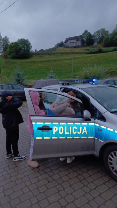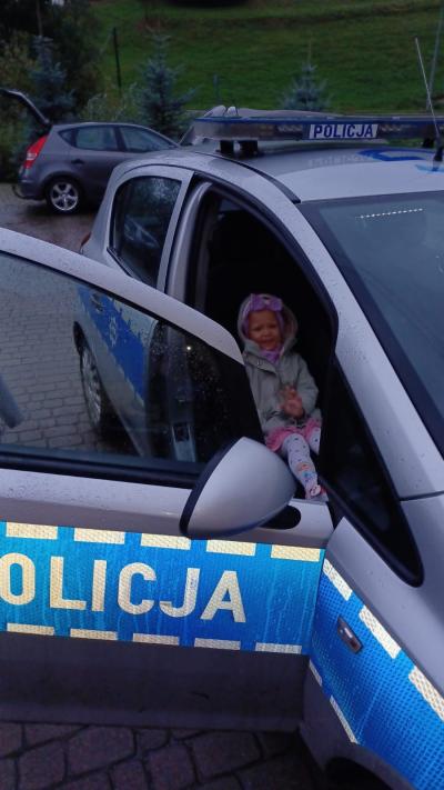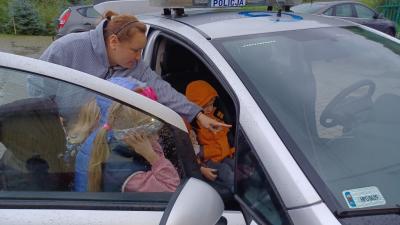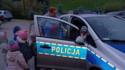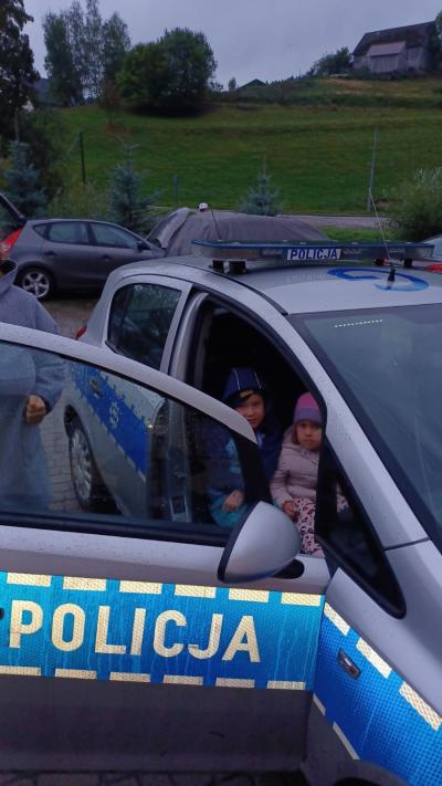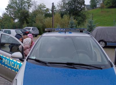 Największą atrakcją spotkania okazała się jednak możliwość zobaczenia z bliska wyposażenia policjanta – dzieci z ogromnym zaciekawieniem oglądały ,,lizak’’, pałkę służbową i inne elementy. Niezapomnianym przeżyciem było także wejście do radiowozu policyjnego i włączenie sygnałów dźwiękowych i świetlnych.
