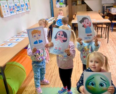 Podczas zajęć dzieci uczestniczyły w zabawach ruchowych, rozmowach i ćwiczeniach, które pomagały im rozpoznawać emocje i okazywać je w sposób bezpieczny i akceptowany.