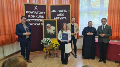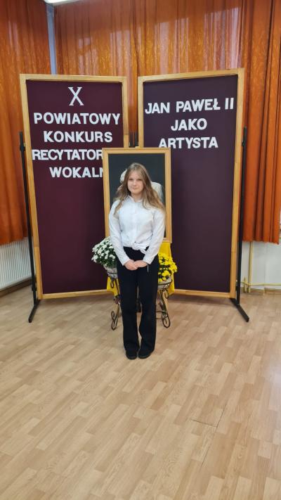 II miejsce naszej uczennicy w X Powiatowym Konkursie wokalno-recytatorskim "Jan Paweł II jako artysta"