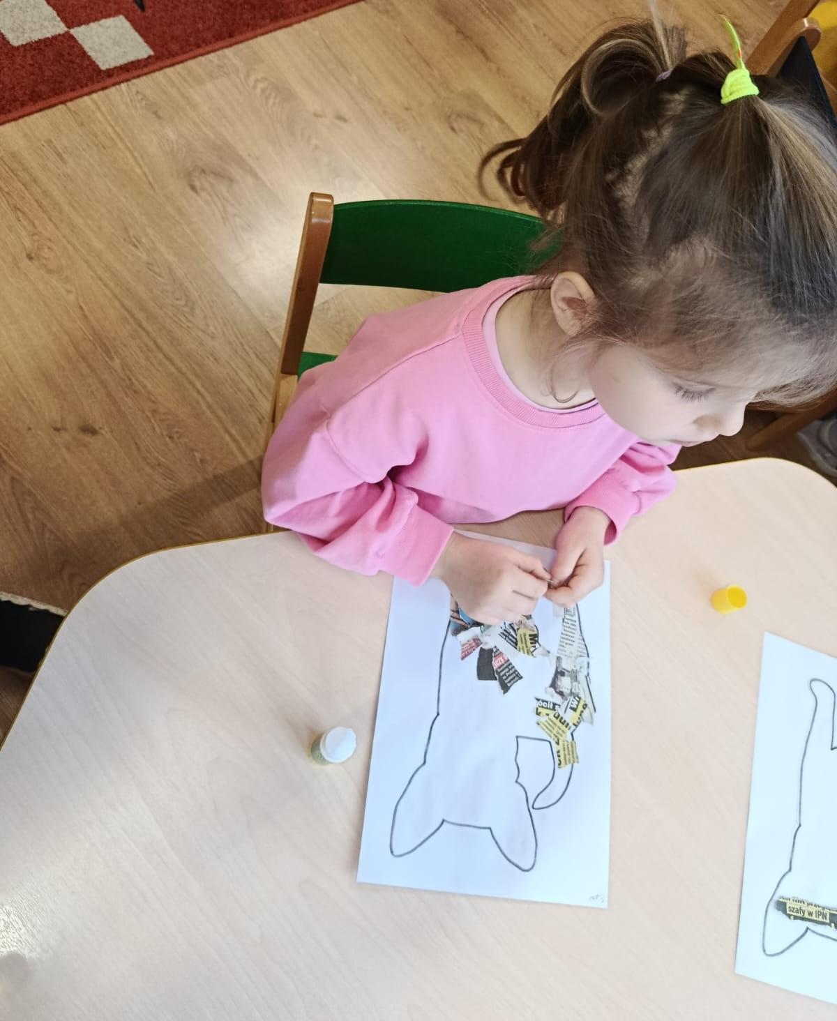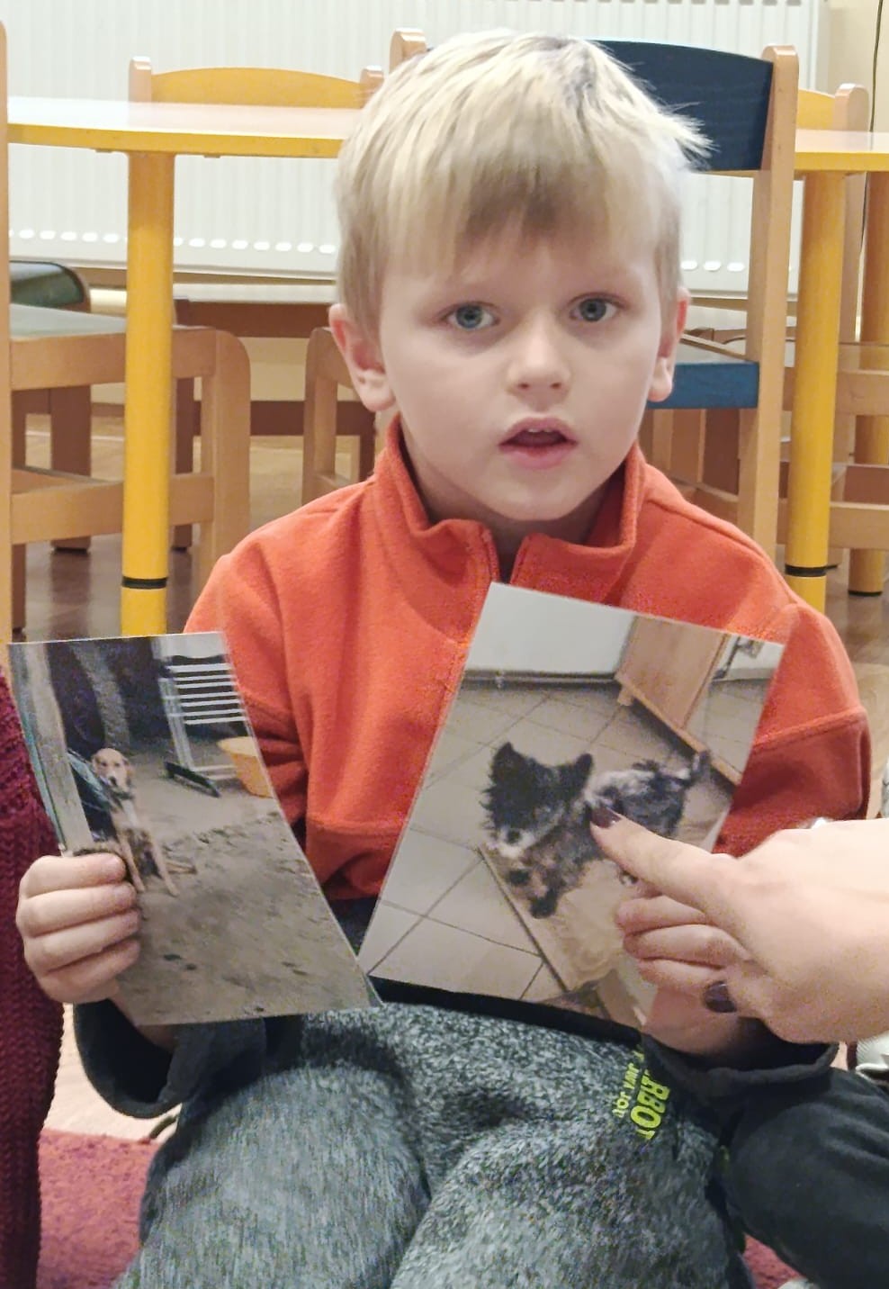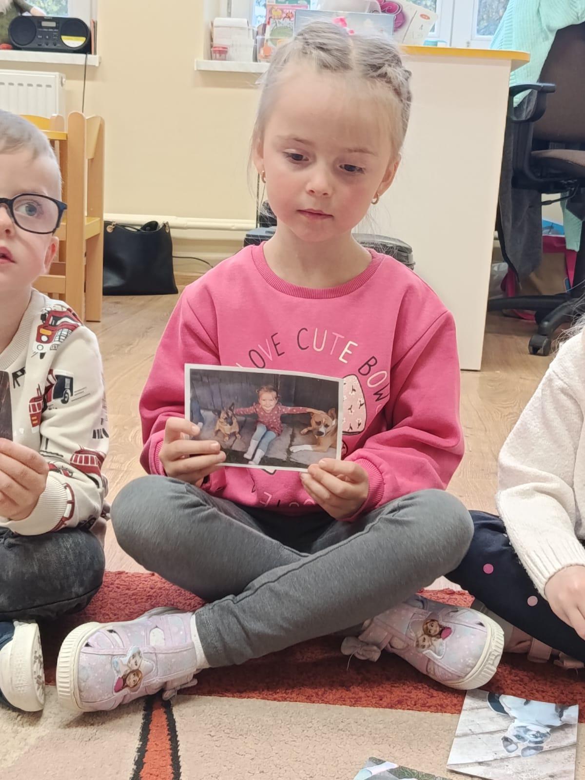 Podczas zajęć dzieci pokazywały zdjęcia swoich pupili i z wielkim zaangażowaniem i dumą opowiadali o nich kolegom i koleżankom. Przedszkolaki chętnie dzieliły się ciekawostkami o zachowaniu swoich czworonożnych przyjaciół oraz opowiadały, jak troszczą się o nie w domu.
