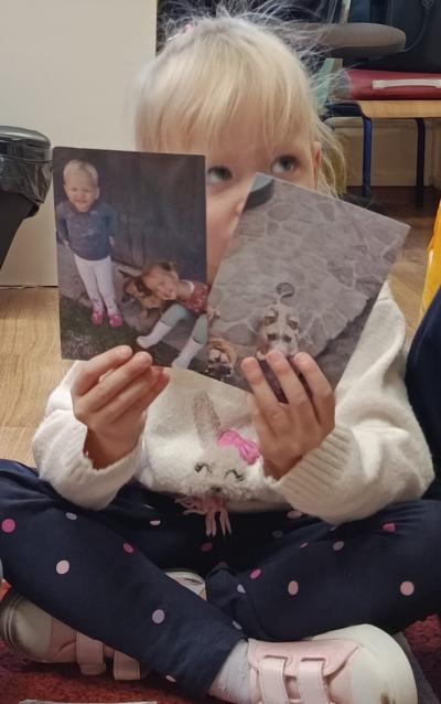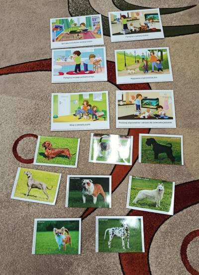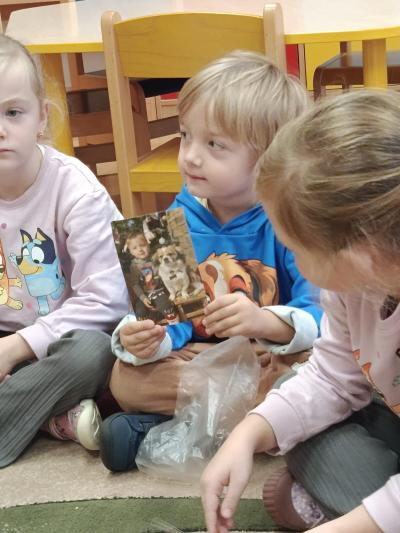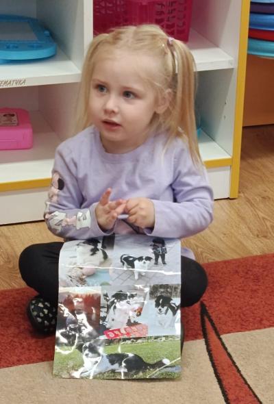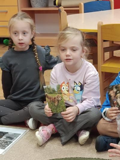 Podczas zajęć dzieci pokazywały zdjęcia swoich pupili i z wielkim zaangażowaniem i dumą opowiadali o nich kolegom i koleżankom. Przedszkolaki chętnie dzieliły się ciekawostkami o zachowaniu swoich czworonożnych przyjaciół oraz opowiadały, jak troszczą się o nie w domu.