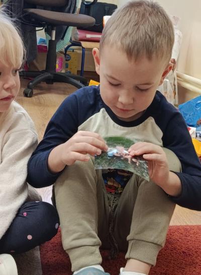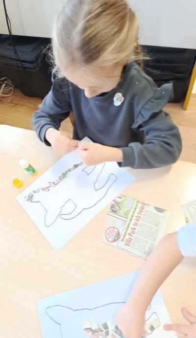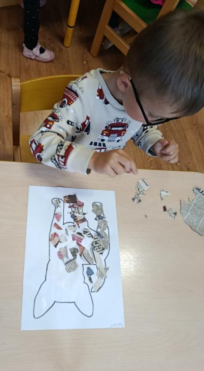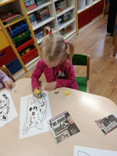 W części plastycznej dzieci wykonały piękne prace – wyklejali kundelki z kolorowych gazet, wykazując się pomysłowością, kreatywnością i cierpliwością.