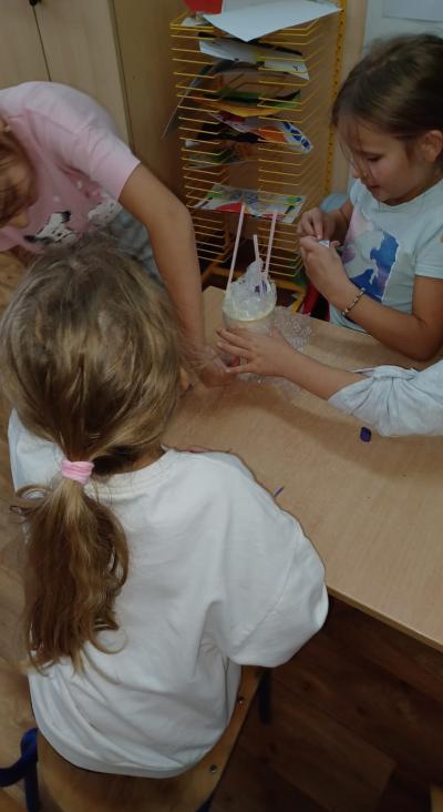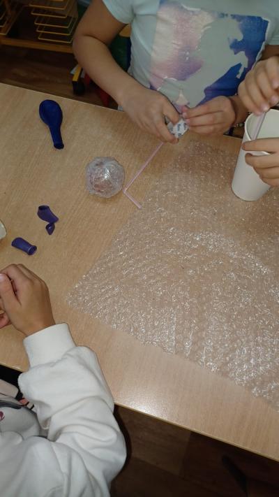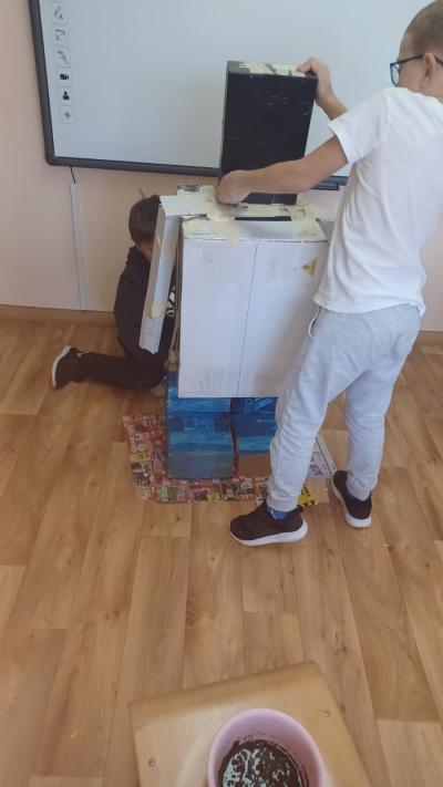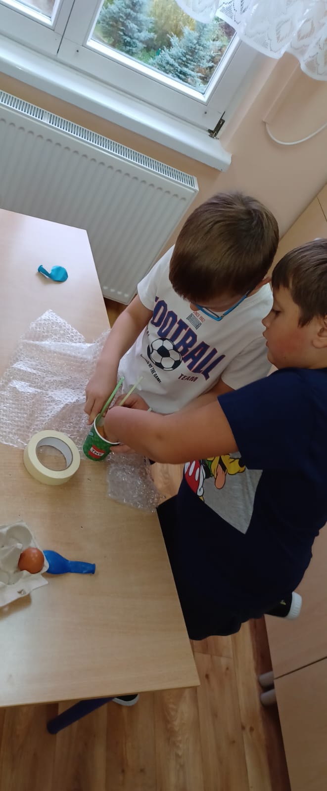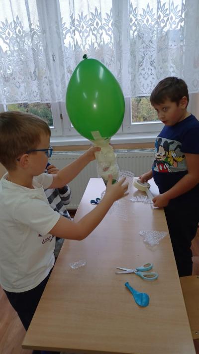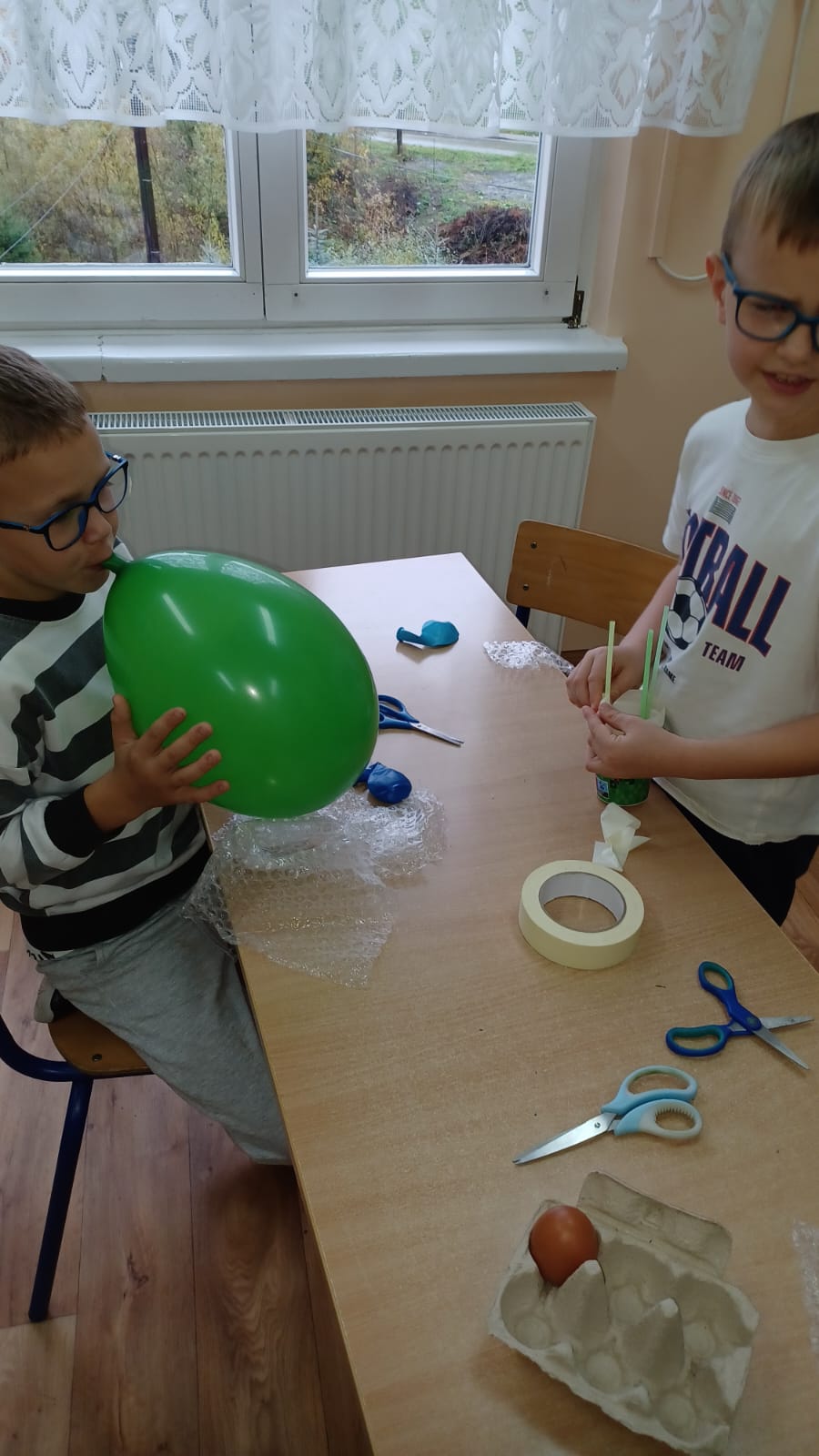 wspólną pracę. Jej efektem był „jajkodrom”. Uczniowie udowodnili, że potrafią być bardzo pomysłowymi konstruktorami, jajka w jajkodromach po spotkaniu z podłogą (puszczone z wysokości 2 metrów) - były w całości!!!