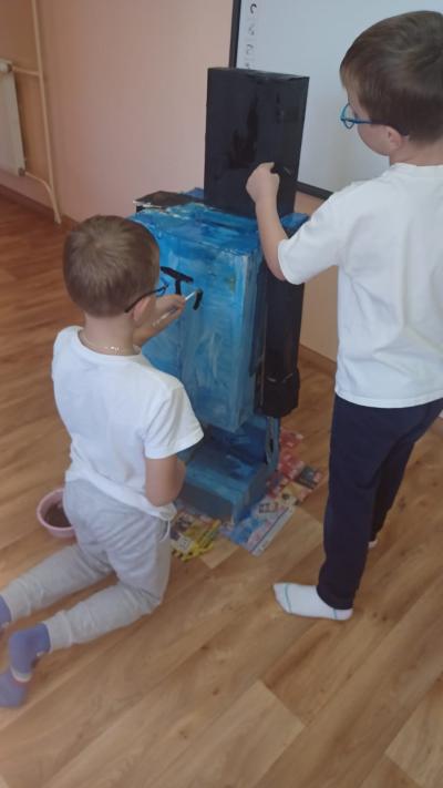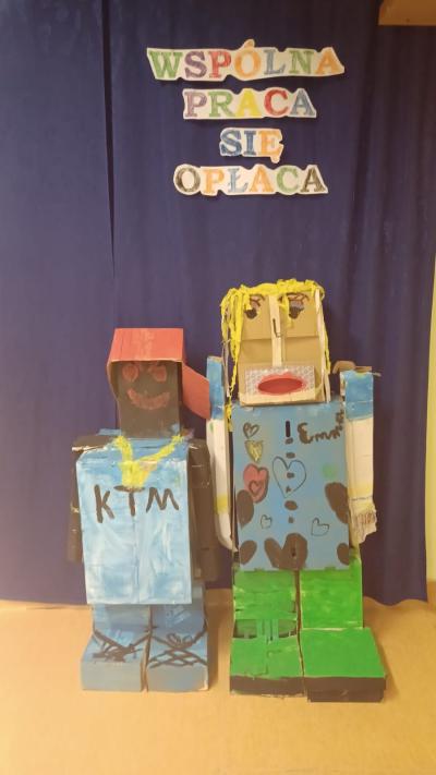 Dzieci poznały składniki przyrody ożywionej i nie nieożywionej oraz wytwór pracy ludzkiej jakim jest ROBOT. Trenując umiejętności pracy zespołowej, osiąganie kompromisu oraz cierpliwość (praca trwała parę dni i składała się z kilku etapów) uczniowie zbudowali roboty. Czy odgadniecie na jakie grupy byli podzieleni? Popatrzcie na ich piękne prace. Wystawa pt. „Wspólna praca się opłaca” na korytarzu szkolnym do 21.11.2025 r.