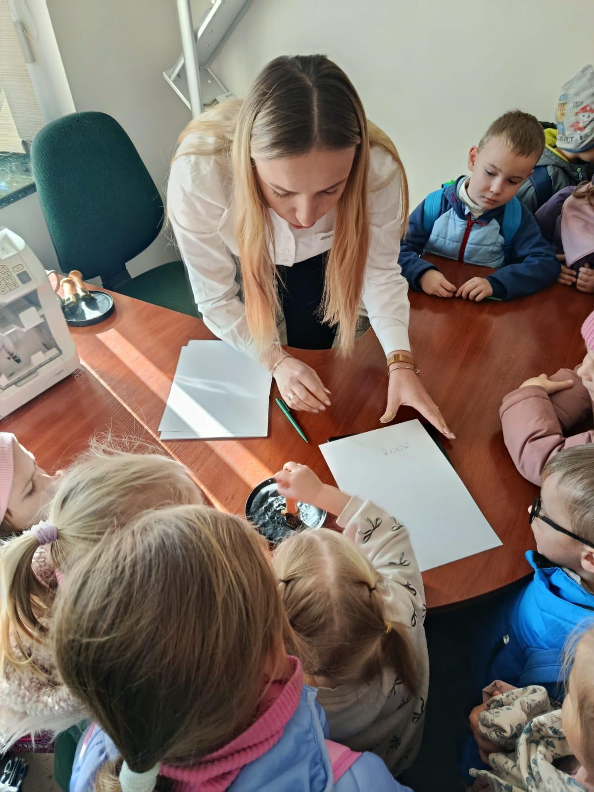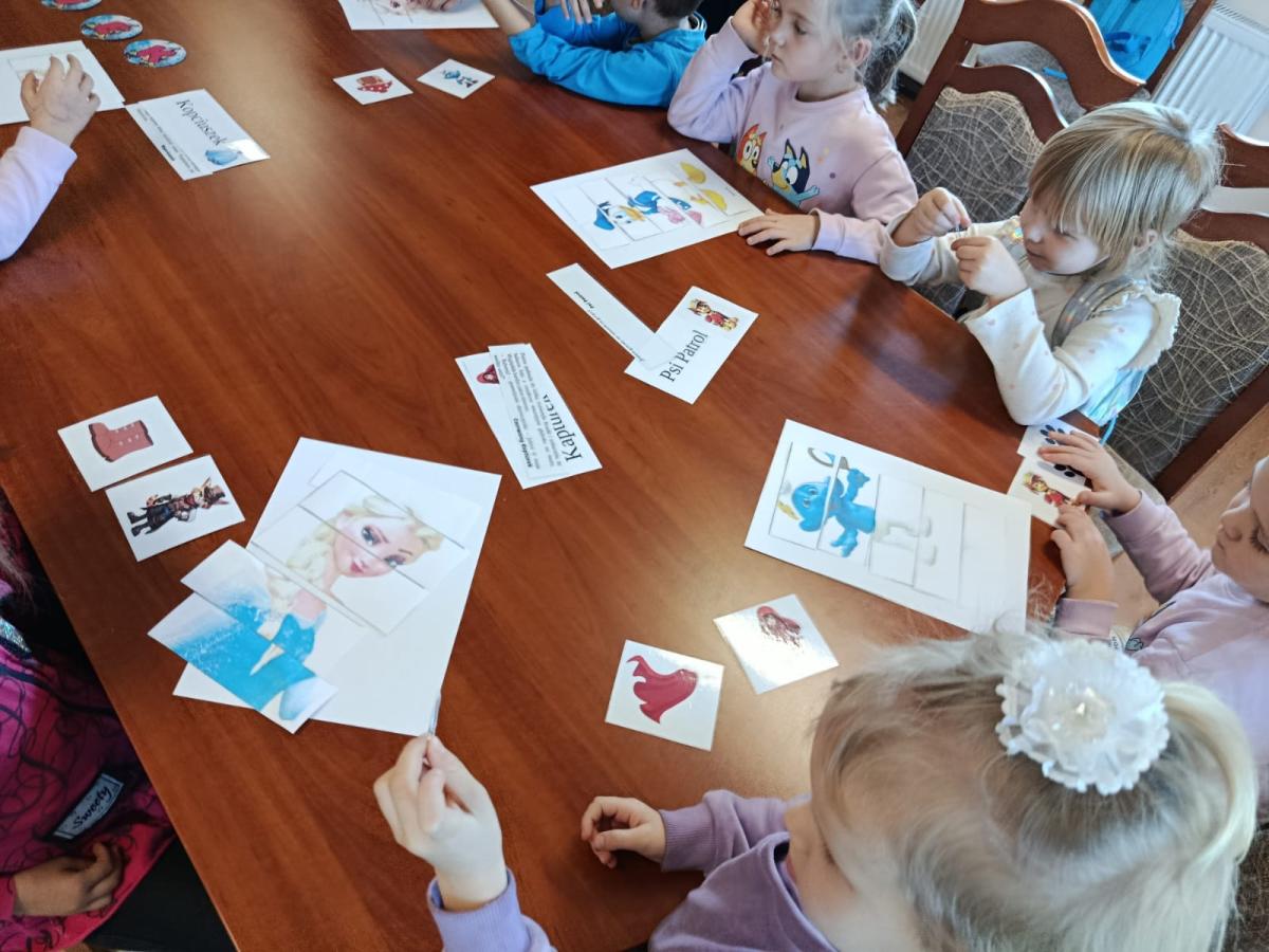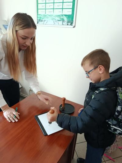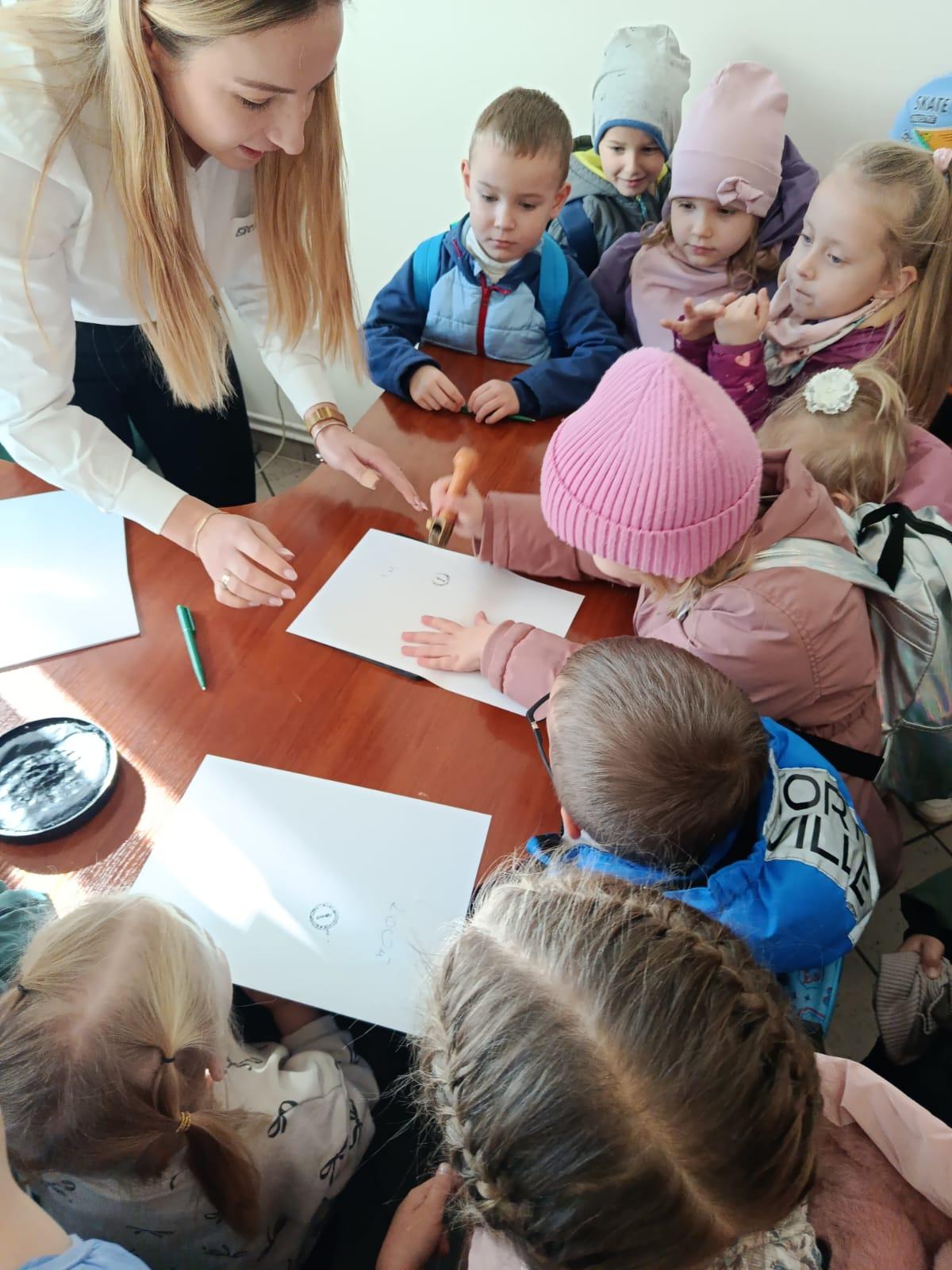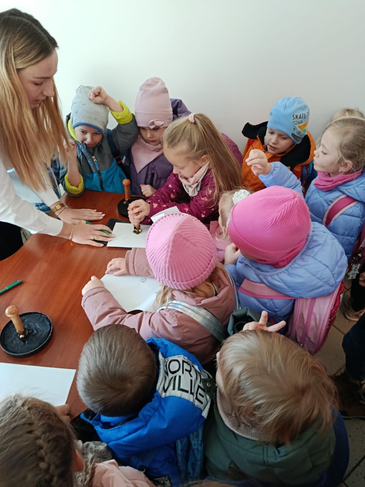 W środę 5 listopada 2025 r. przedszkolaki z oddziału przedszkolnego i uczniowie klasy 1 i 2 wybrali się na ciekawą wycieczkę edukacyjną. Pierwszym punktem programu była wizyta w Banku Spółdzielczym, gdzie zostali serdecznie przyjęci przez pracujące tam panie. Pracownice oprowadziły dzieci po banku i opowiedziały o swojej pracy w banku. Dużym zainteresowaniem cieszył się pokaz liczarki do pieniędzy, dzięki której można było zobaczyć, jak szybko i sprawnie można policzyć dużą ilość banknotów.