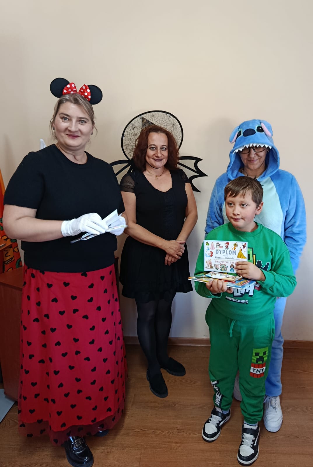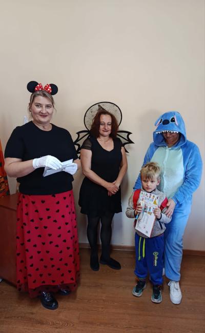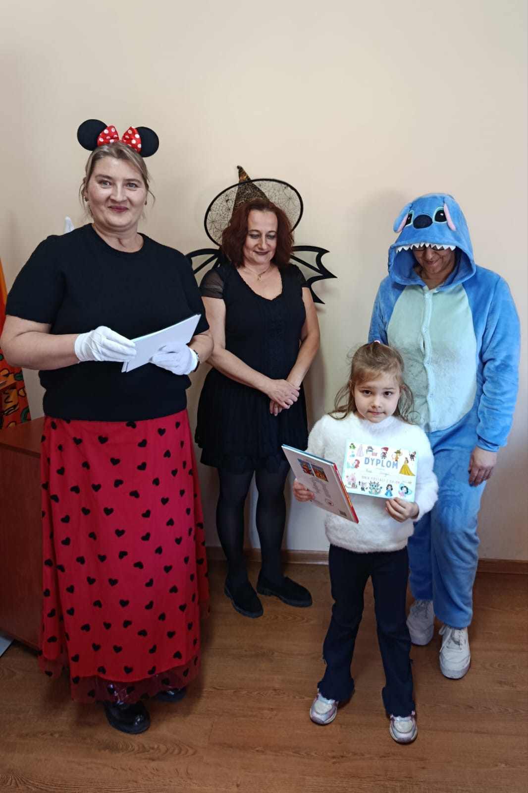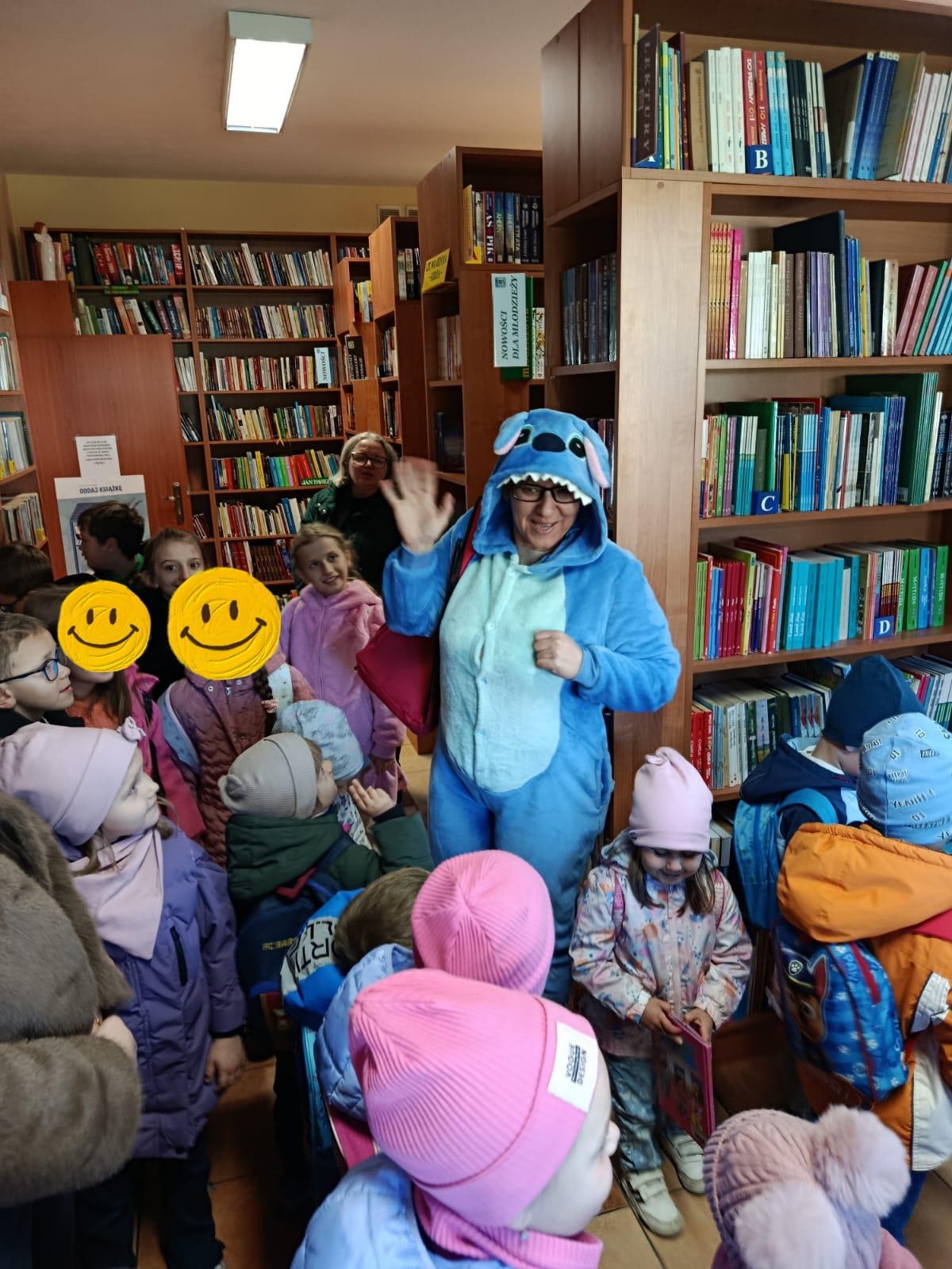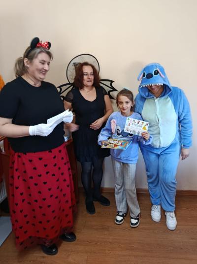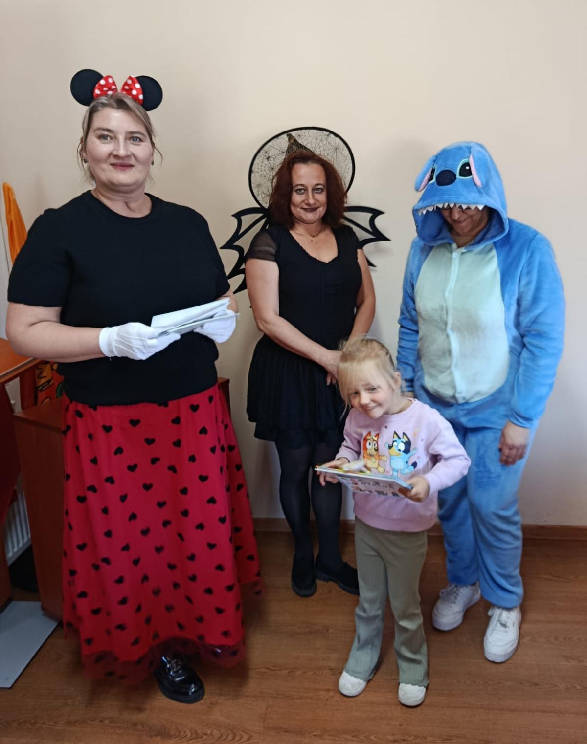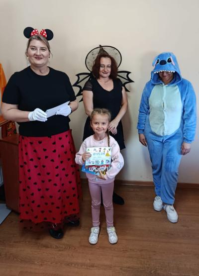 Następnie dzieci udały się do Gminnej Biblioteki Publicznej w Słopnicach, gdzie czekało na nie wyjątkowe powitanie przez Myszkę Miki i Czarodziejkę, a wkrótce do bajkowej ekipy dołączył także sympatyczny Stich. Wizyta została zorganizowana z okazji Międzynarodowego Dnia Postaci z Bajek. Panie oprowadziły wszystkich po bibliotece, opowiedziały o swojej pracy oraz o zasadach, jakich należy przestrzegać podczas korzystania z biblioteki. Dodatkową atrakcją był udział w kreatywnych warsztatach bibliotecznych, podczas których nie zabrakło quizów, zagadek, wesołych zabaw ruchowych, które pozwoliły dzieciom wcielić się w ulubione postacie z bajek i rozwijać swoją wyobraźnię. Na zakończenie spotkania każdy uczestnik otrzymał pamiątkowy dyplom, książeczkę i słodką przekąskę a panie zachęcały do częstego odwiedzania biblioteki i sięgania po ciekawe książki.