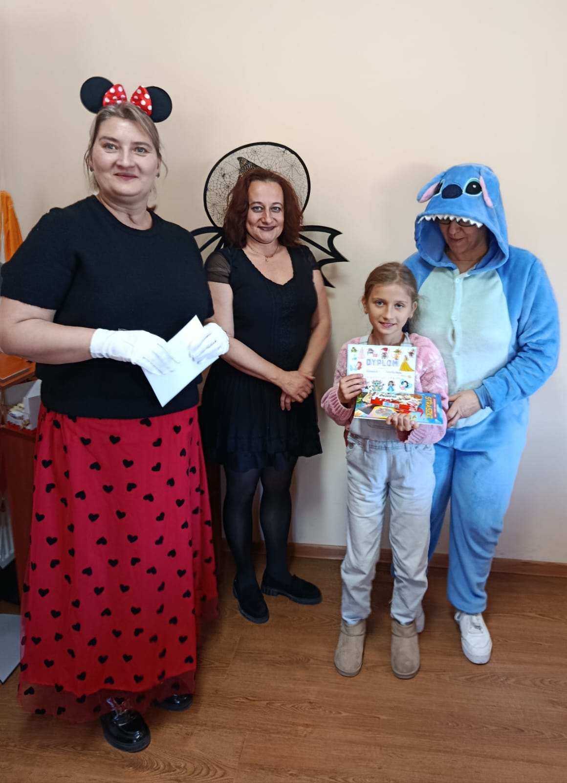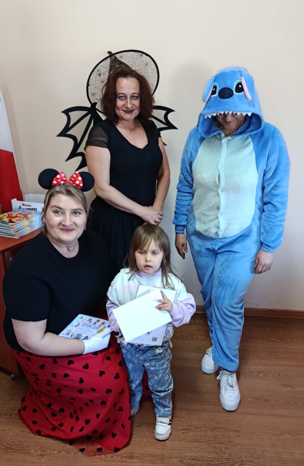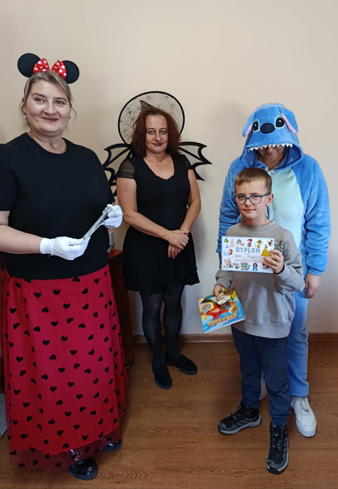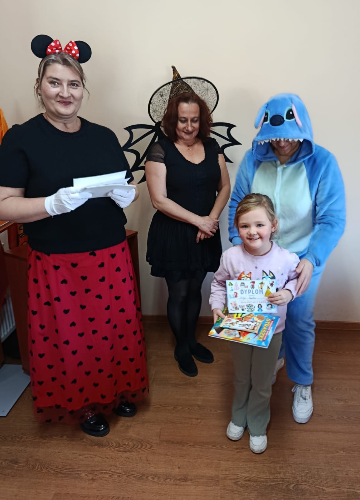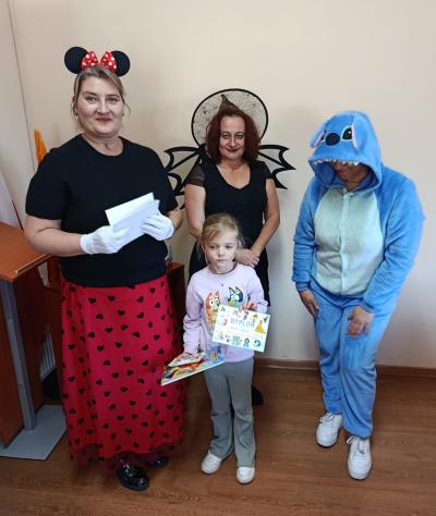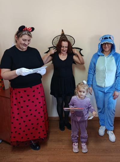 Następnie dzieci udały się do Gminnej Biblioteki Publicznej w Słopnicach, gdzie czekało na nie wyjątkowe powitanie przez Myszkę Miki i Czarodziejkę, a wkrótce do bajkowej ekipy dołączył także sympatyczny Stich. Wizyta została zorganizowana z okazji Międzynarodowego Dnia Postaci z Bajek. Panie oprowadziły wszystkich po bibliotece, opowiedziały o swojej pracy oraz o zasadach, jakich należy przestrzegać podczas korzystania z biblioteki. Dodatkową atrakcją był udział w kreatywnych warsztatach bibliotecznych, podczas których nie zabrakło quizów, zagadek, wesołych zabaw ruchowych, które pozwoliły dzieciom wcielić się w ulubione postacie z bajek i rozwijać swoją wyobraźnię. Na zakończenie spotkania każdy uczestnik otrzymał pamiątkowy dyplom, książeczkę i słodką przekąskę a panie zachęcały do częstego odwiedzania biblioteki i sięgania po ciekawe książki.