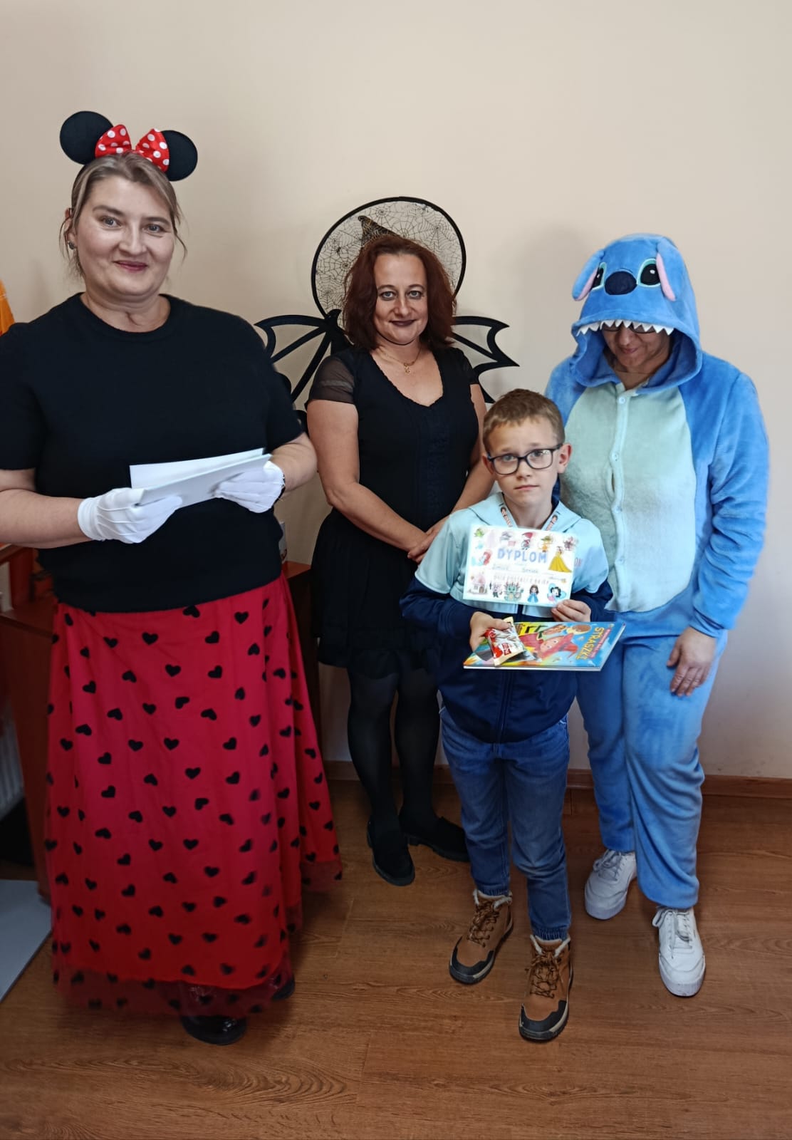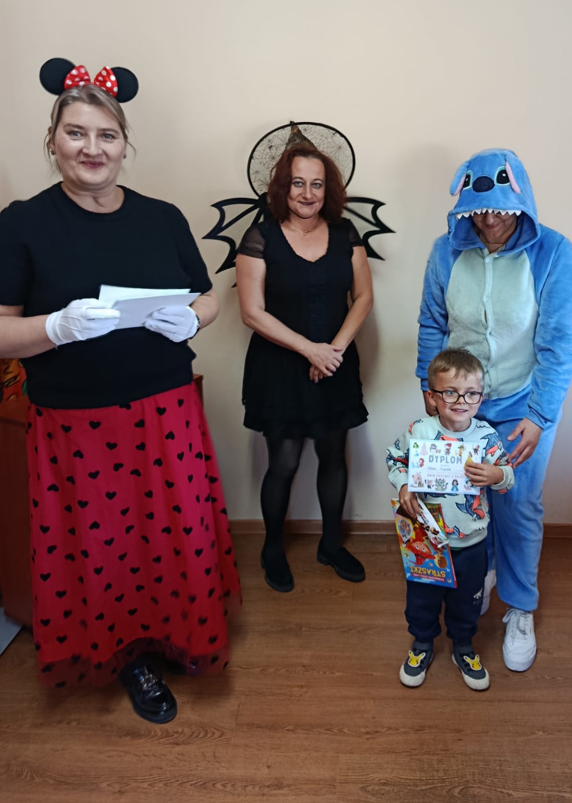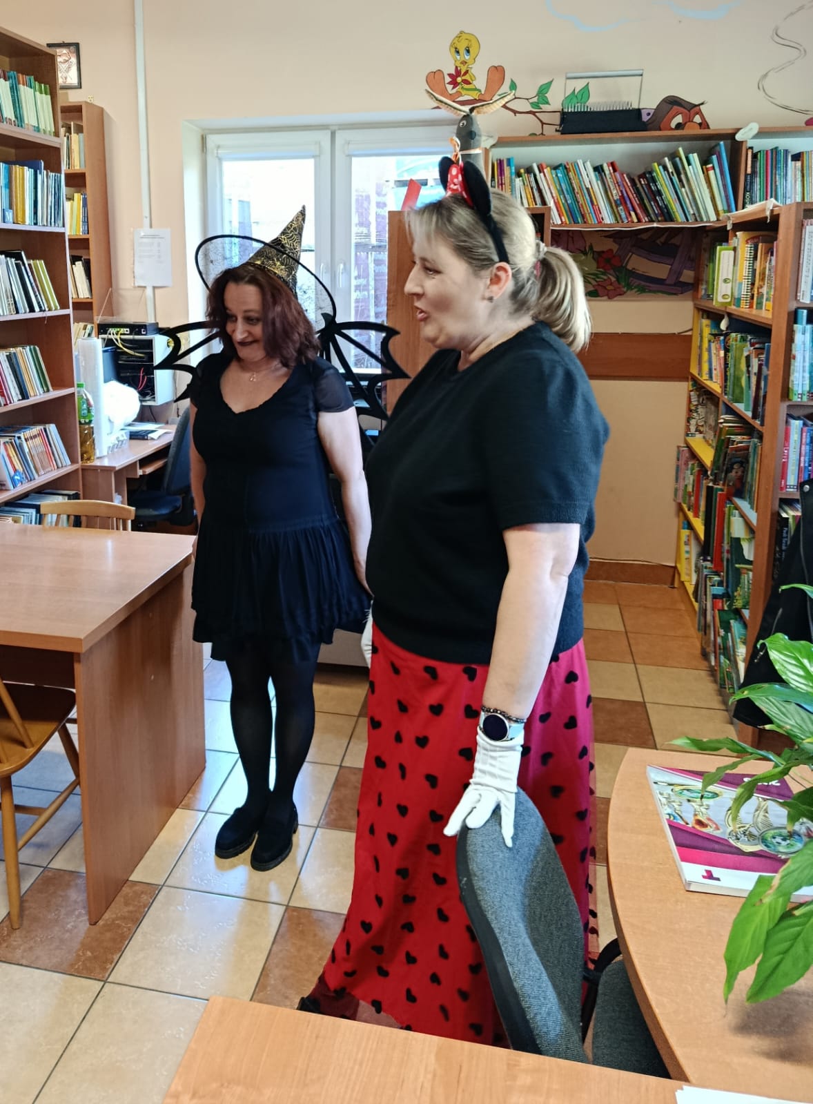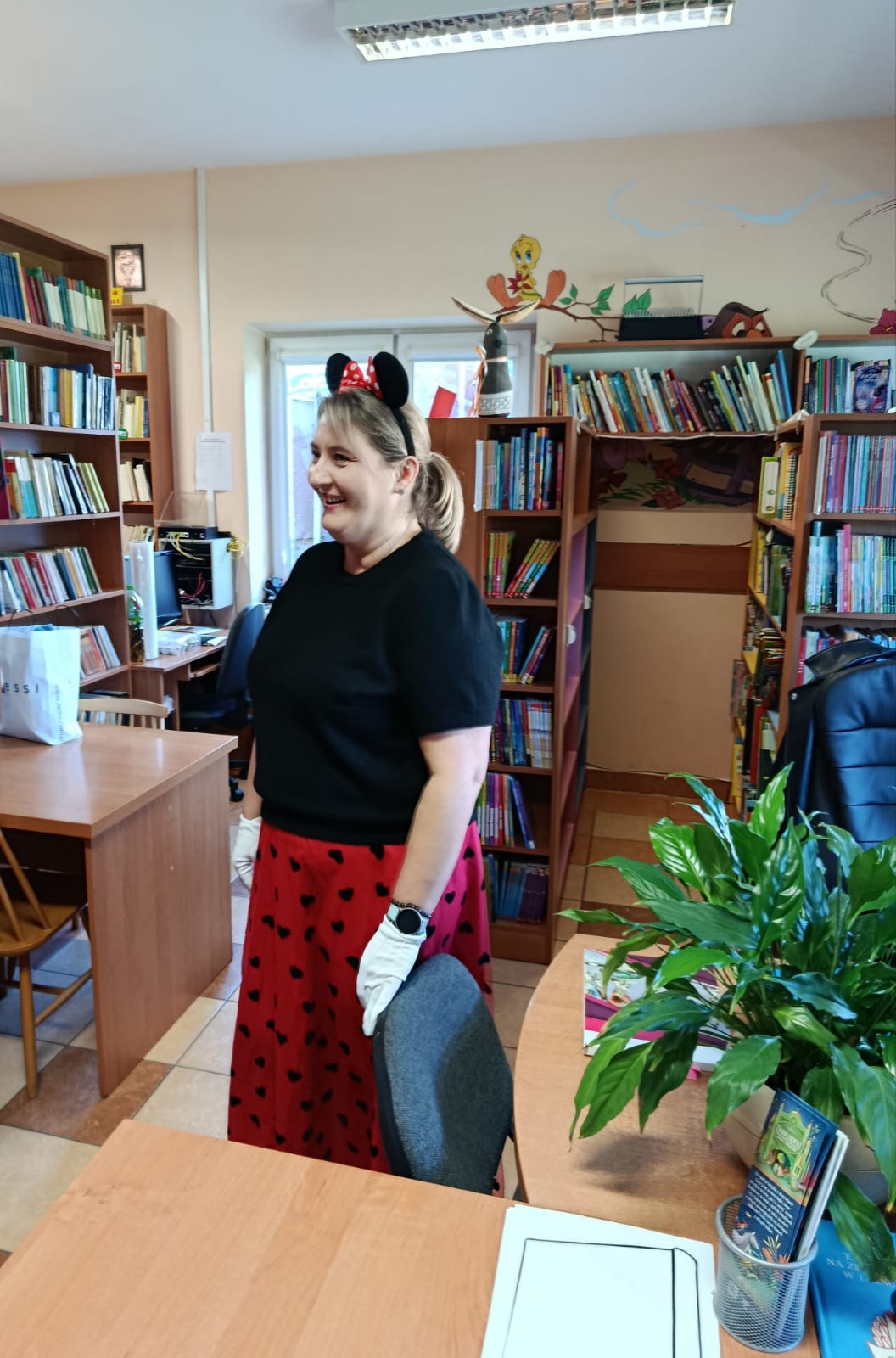 Następnie dzieci udały się do Gminnej Biblioteki Publicznej w Słopnicach, gdzie czekało na nie wyjątkowe powitanie przez Myszkę Miki i Czarodziejkę, a wkrótce do bajkowej ekipy dołączył także sympatyczny Stich. Wizyta została zorganizowana z okazji Międzynarodowego Dnia Postaci z Bajek. Panie oprowadziły wszystkich po bibliotece, opowiedziały o swojej pracy oraz o zasadach, jakich należy przestrzegać podczas korzystania z biblioteki. Dodatkową atrakcją był udział w kreatywnych warsztatach bibliotecznych, podczas których nie zabrakło quizów, zagadek, wesołych zabaw ruchowych, które pozwoliły dzieciom wcielić się w ulubione postacie z bajek i rozwijać swoją wyobraźnię. Na zakończenie spotkania każdy uczestnik otrzymał pamiątkowy dyplom, książeczkę i słodką przekąskę a panie zachęcały do częstego odwiedzania biblioteki i sięgania po ciekawe książki.