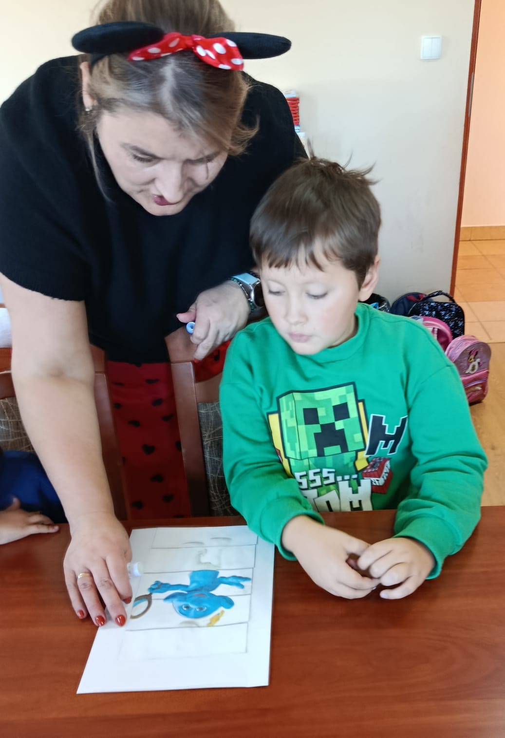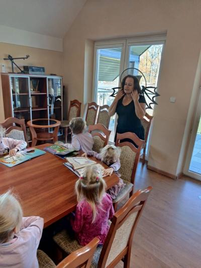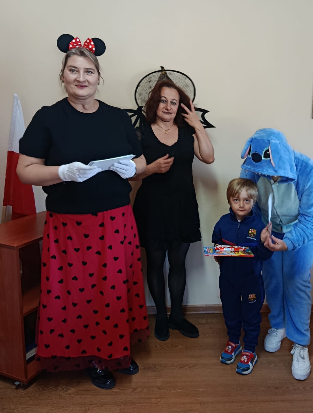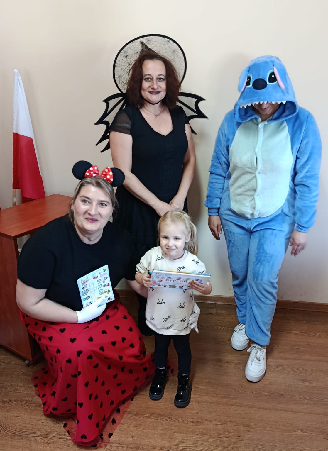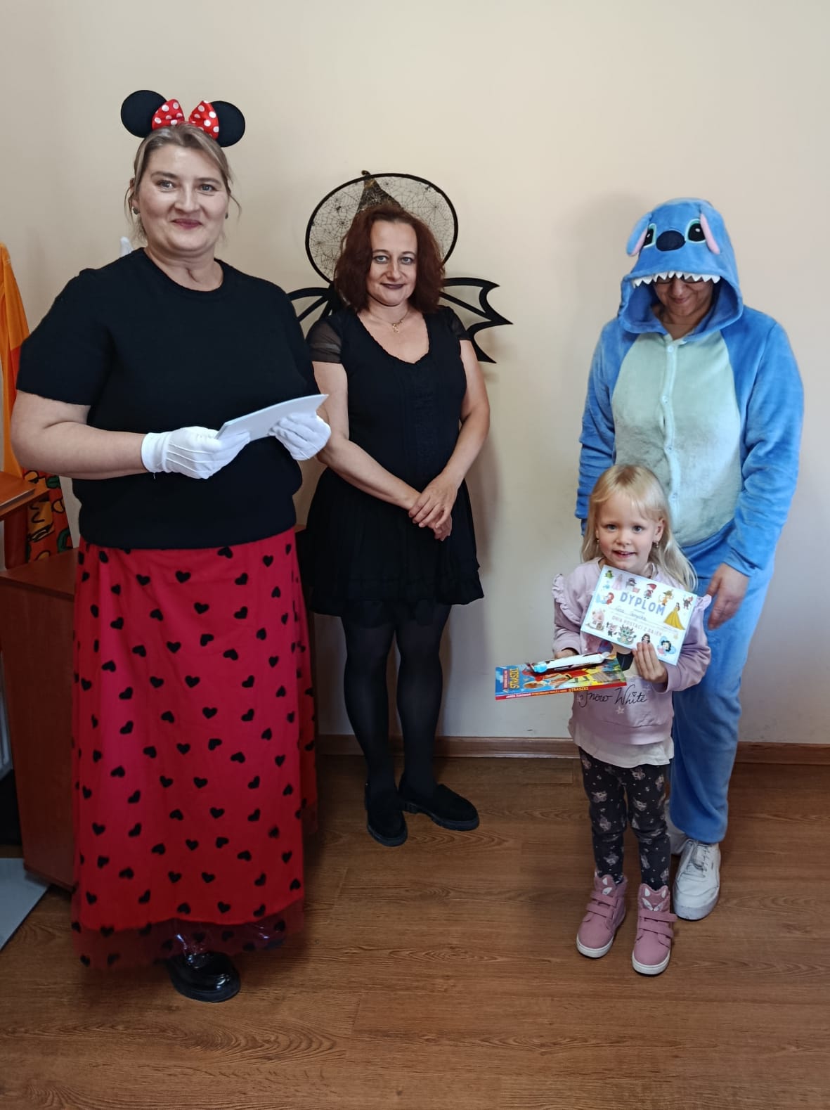 Następnie dzieci udały się do Gminnej Biblioteki Publicznej w Słopnicach, gdzie czekało na nie wyjątkowe powitanie przez Myszkę Miki i Czarodziejkę, a wkrótce do bajkowej ekipy dołączył także sympatyczny Stich. Wizyta została zorganizowana z okazji Międzynarodowego Dnia Postaci z Bajek. Panie oprowadziły wszystkich po bibliotece, opowiedziały o swojej pracy oraz o zasadach, jakich należy przestrzegać podczas korzystania z biblioteki. Dodatkową atrakcją był udział w kreatywnych warsztatach bibliotecznych, podczas których nie zabrakło quizów, zagadek, wesołych zabaw ruchowych, które pozwoliły dzieciom wcielić się w ulubione postacie z bajek i rozwijać swoją wyobraźnię. Na zakończenie spotkania każdy uczestnik otrzymał pamiątkowy dyplom, książeczkę i słodką przekąskę a panie zachęcały do częstego odwiedzania biblioteki i sięgania po ciekawe książki.