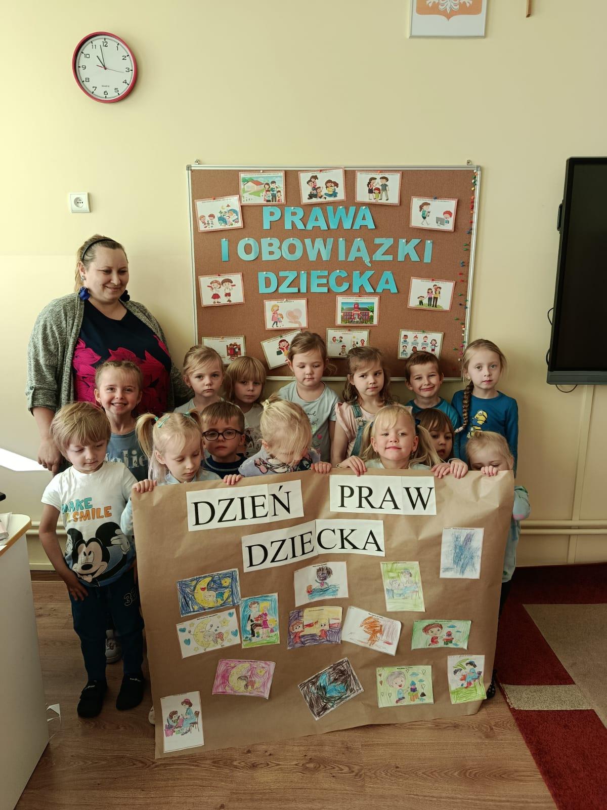 Również dzieci z oddziału przedszkolnego włączyły się w obchody tego wyjątkowego dnia. Podczas zajęć przedszkolaki rozmawiały o swoich prawach i obowiązkach, a także o tym, dlaczego są one tak ważne w codziennym życiu. Na zakończenie wspólnie stworzyły kolorowy plakat przedstawiający wybrane prawa dziecka.