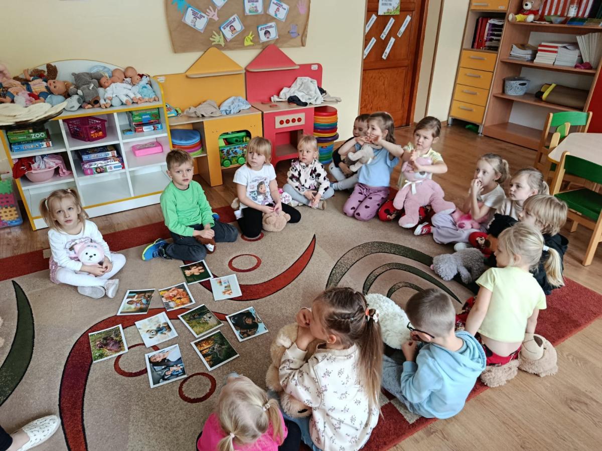 W kolejnej części zajęć dzieci poznały najpopularniejsze bajki o misiach, takie jak np. „Miś Uszatek”, „Kubuś Puchatek” czy „Miś Paddington”. Mogły dowiedzieć się, skąd pochodzą ich ulubieni bohaterowie oraz co sprawia, że misie są tak lubiane przez dzieci na całym świecie. Tego dnia nie ograniczaliśmy się jednak tylko do pluszaków i bajek. Przedszkolaki poznały również prawdziwe życie i zwyczaje niedźwiedzia brunatnego – dowiedziały się, gdzie mieszka, co je, jak przygotowuje się do zimy i jak wygląda jego codzienność w naturalnym środowisku. Ta część zajęć wzbudziła ogromne zainteresowanie i wiele pytań.
