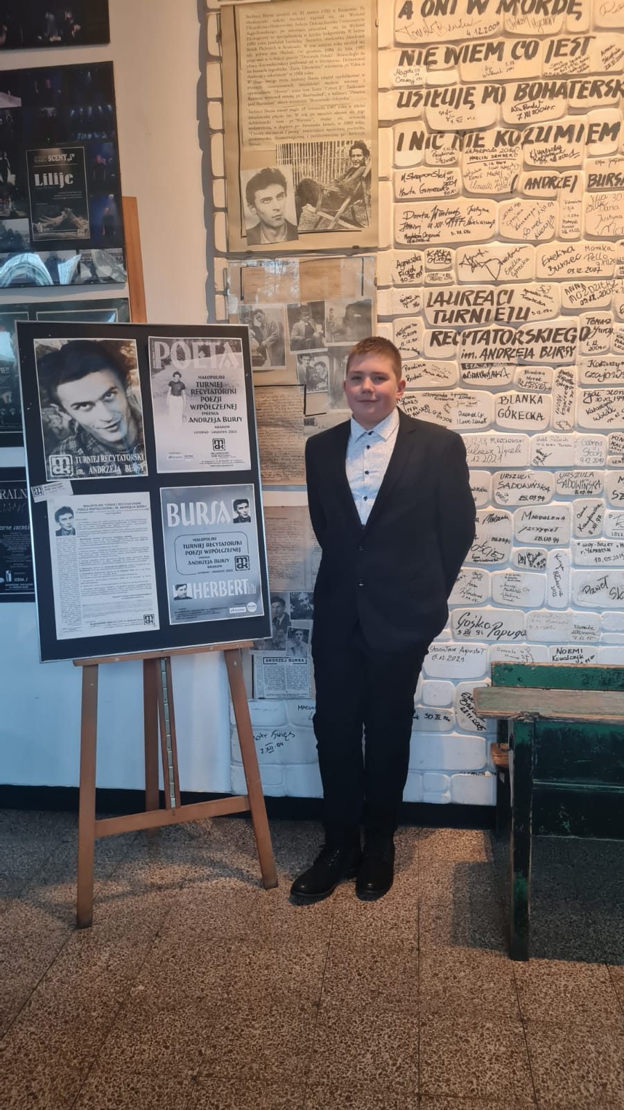 Ogromne gratulacje kierujemy również do Bartka, który mimo że dopiero rozpoczyna swoją recytatorską drogę, rozwija się w niesamowitym tempie. Idzie jak burza — ma już na swoim koncie finały wojewódzkie Małopolskiego Konkursu Recytatorskiego!
