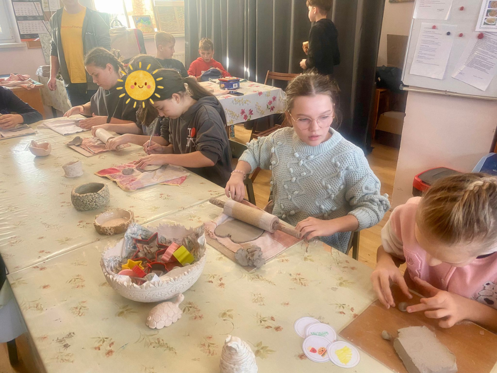 Po oprowadzeniu uczniowie wzięli udział w warsztatach artystycznych. W pierwszej części wykonywali własne projekty na magnes, a następnie tworzyli modele z gliny pod okiem instruktorów. Zajęcia pozwoliły im rozwinąć kreatywność, zdolności manualne oraz zapoznać się z technikami pracy stosowanymi w placówce. Na zakończenie wizyty uczniowie mieli możliwość nabycia ręcznie wykonanych rękodzieł przygotowanych w pracowniach, takich jak stroiki, pamiątki i inne unikatowe wyroby artystyczne.