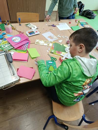 W okresie przedświątecznym uczniowie uczęszczający na zajęcia rozwijające zainteresowania artystyczne oraz dzieci ze świetlicy szkolnej zaangażowali się w wyjątkową, pełną ciepła akcję. Z ogromnym zaangażowaniem i radością wykonali 54 piękne, kolorowe kartki bożonarodzeniowe dla pensjonariuszy Domu Pomocy Społecznej w Mszanie Dolnej.