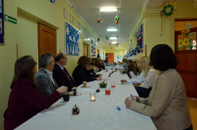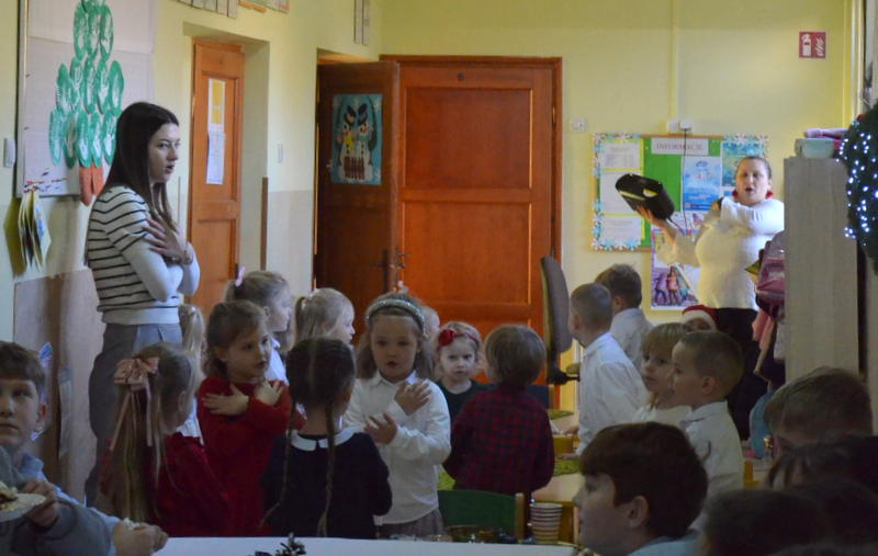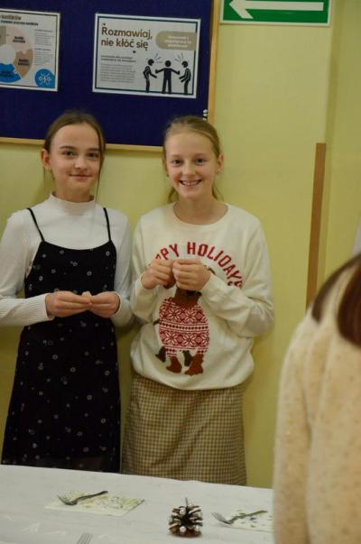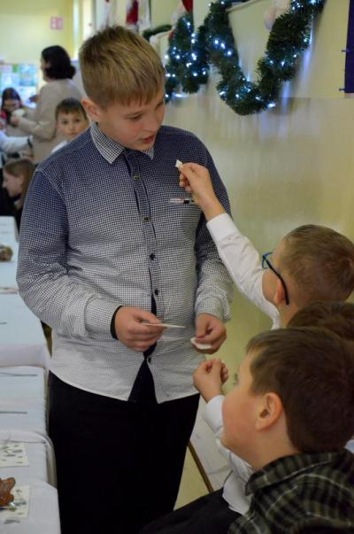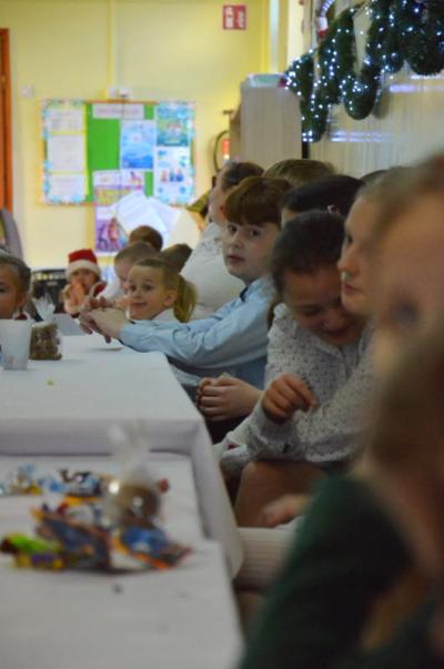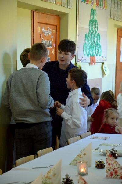 W wyjątkowej, świątecznej atmosferze odbyło się w naszej szkole spotkanie wigilijne, podczas którego przy jednym stole zasiedli uczniowie szkoły, przedszkolaki oraz nauczyciele. Wspólne chwile rozpoczęliśmy modlitwą oraz odczytaniem fragmentu Pisma Świętego przez Bartłomieja Franczaka, a następnie złożyliśmy sobie serdeczne życzenia, dzieląc się opłatkiem.