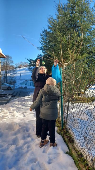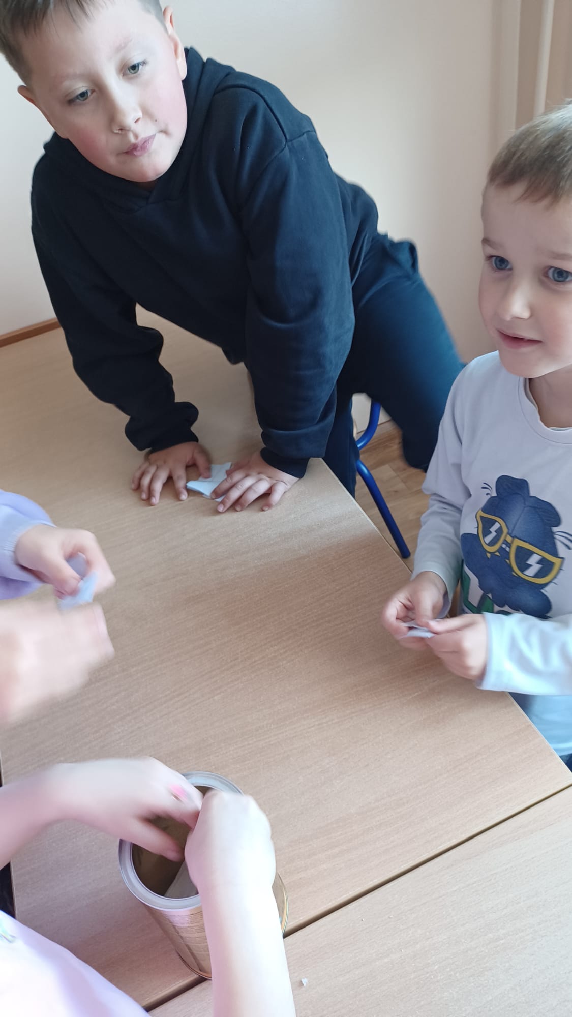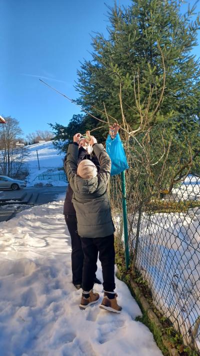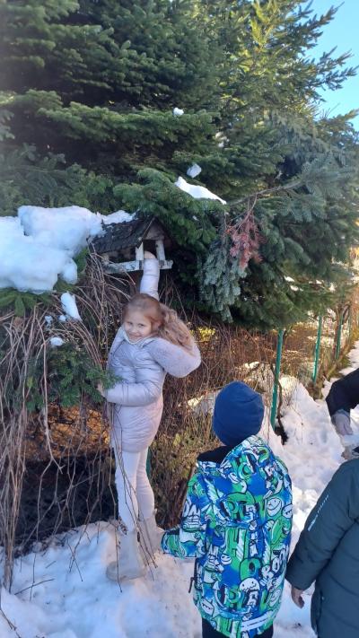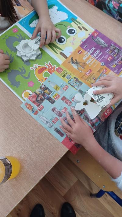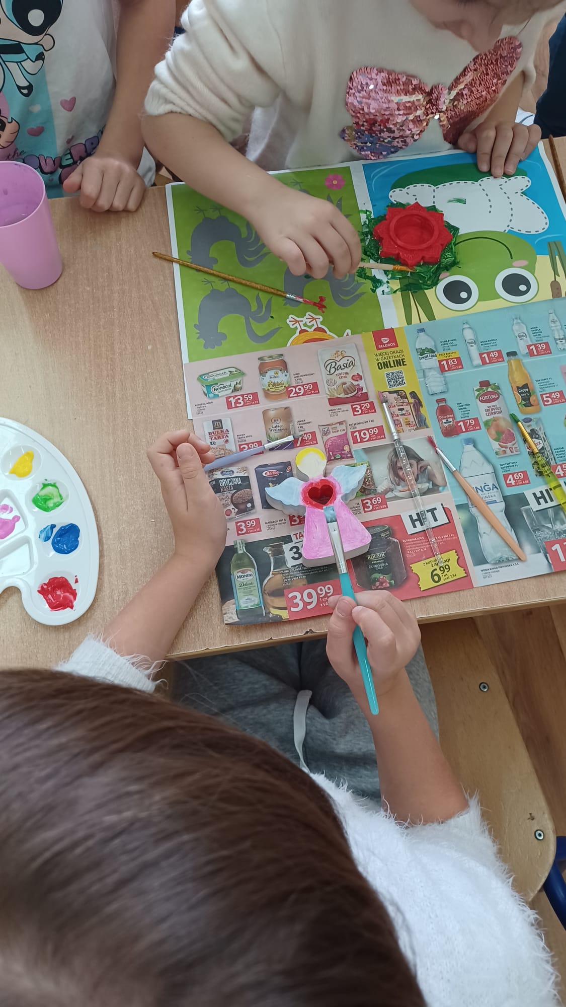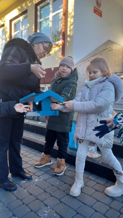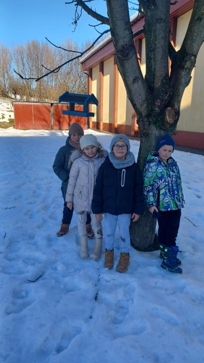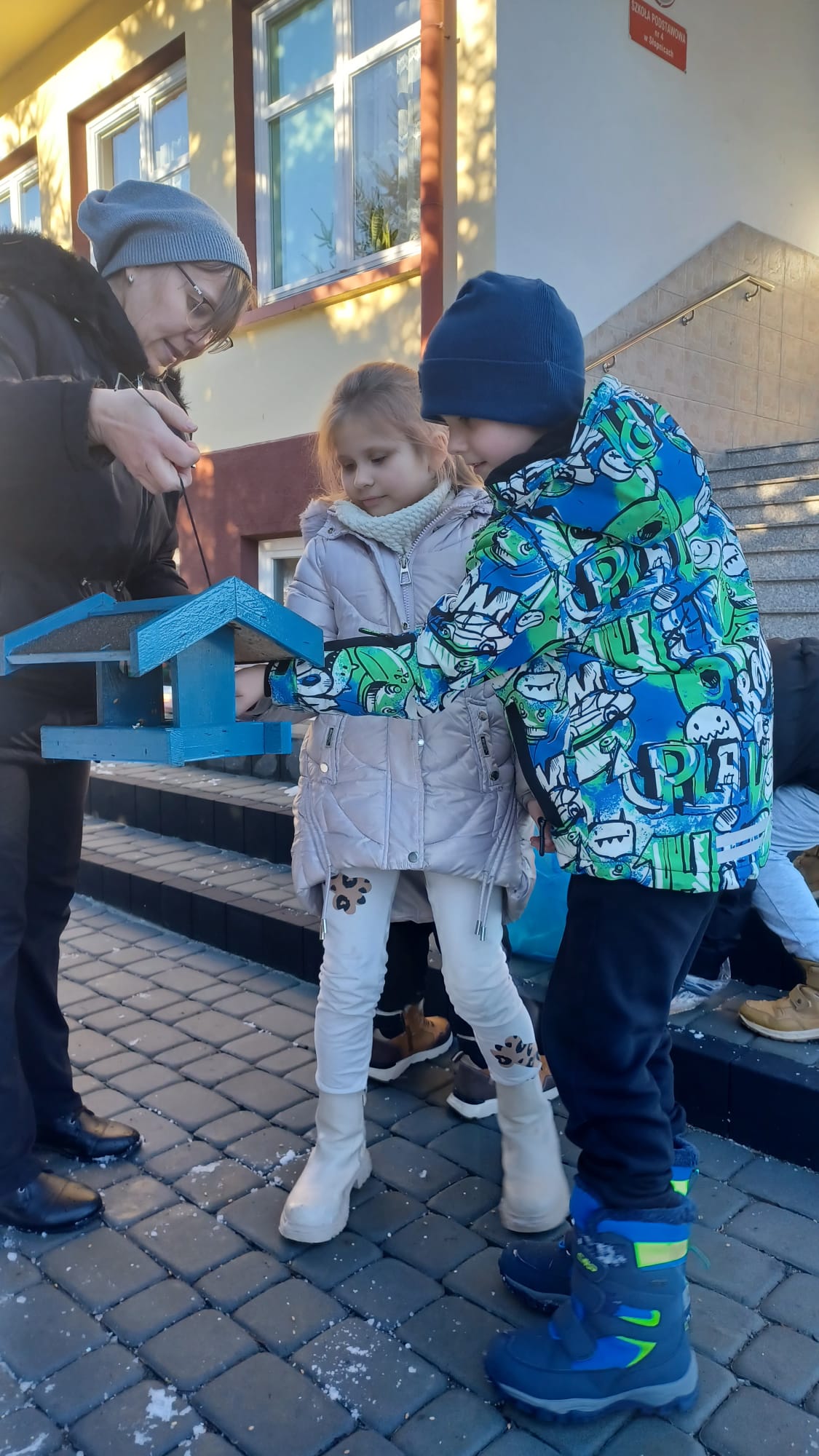 Dzieci z zaangażowaniem tworzyły gipsowe figurki w ramach zajęć „Ja też potrafię”, a po pierwszym dużym śniegu pamiętały o ptakach, przygotowując karmnik, kulki z ziarenek i słoninkę dla sikorek.