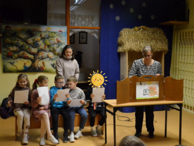 W przedświątecznym czasie wykonaliśmy kartki świąteczne dla seniorów – projekt realizowany we współpracy z Panią Madzią. Przedstawliśmy też przygody Zoi podczas teatrzyku kamishibai w ramach programu „Przyroda z klasą”.
