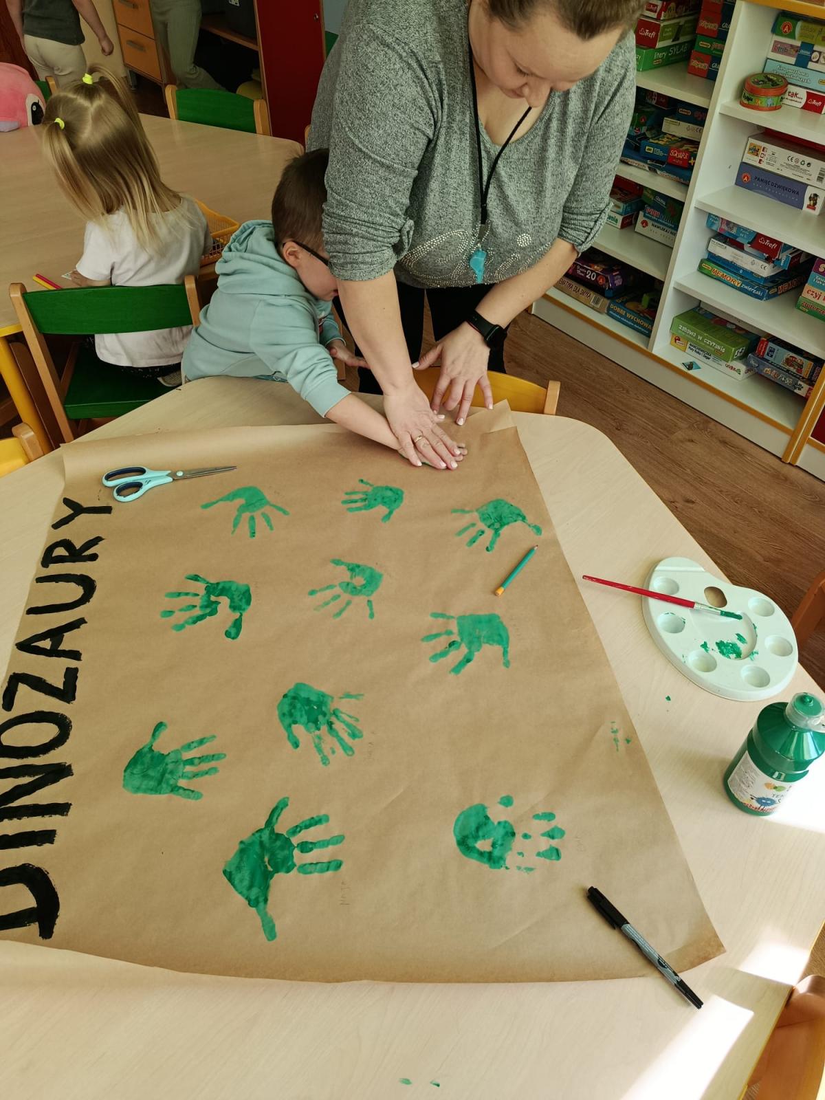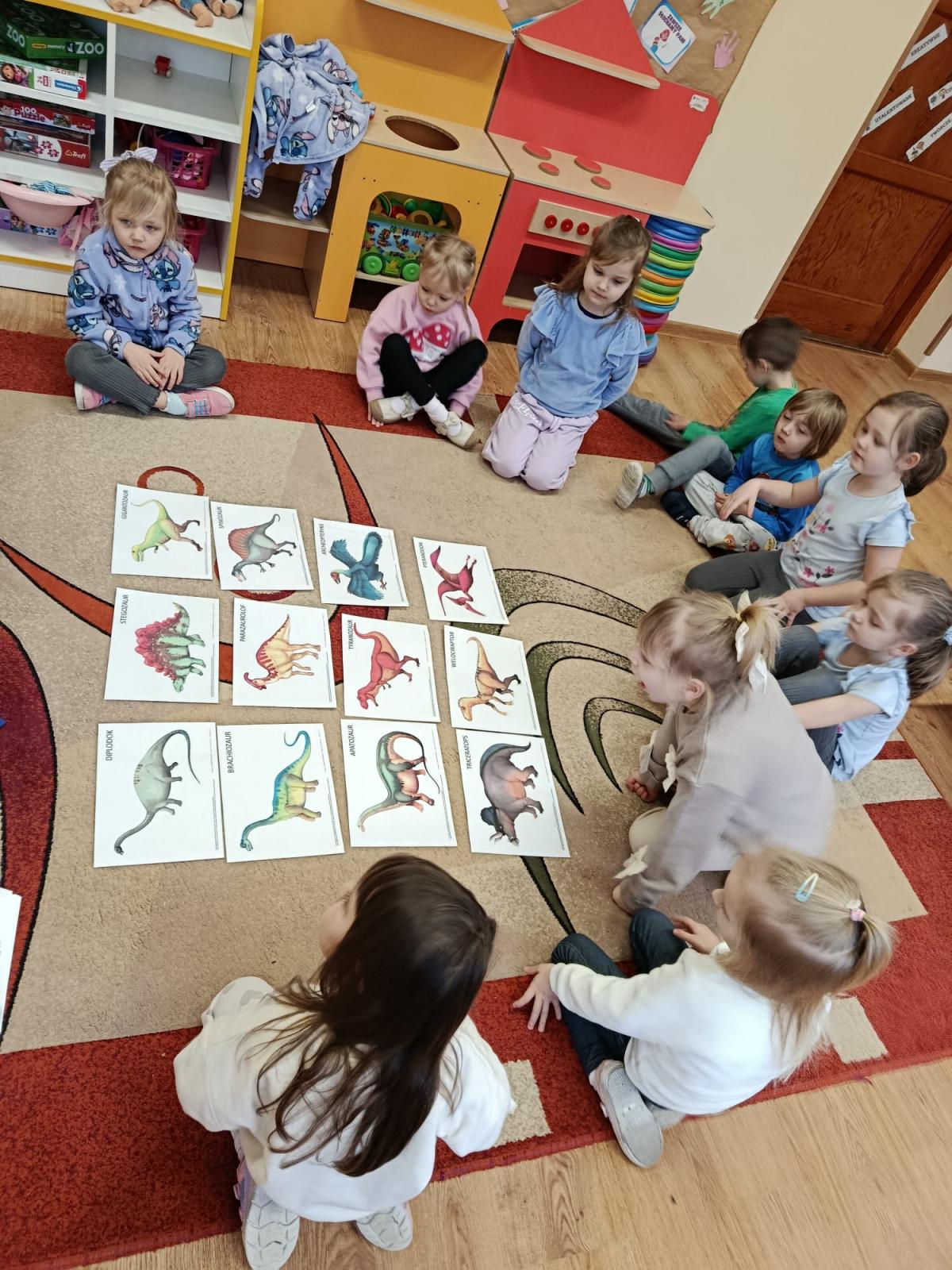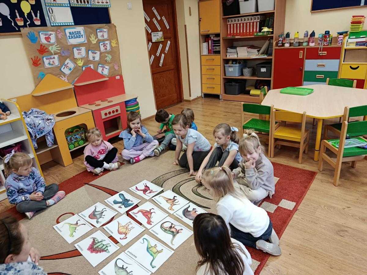 Dowiedziały się również, na czym polega praca paleontologa – jak odnajduje i bada skamieniałości oraz w jaki sposób odtwarza wygląd dinozaurów sprzed milionów lat. Podczas zajęć uczniowie dopasowywali szkielety do odpowiednich dinozaurów, rozwijając przy tym spostrzegawczość i logiczne myślenie. Wykonali także kreatywne prace plastyczne inspirowane światem prehistorii. Nie zabrakło zabaw ruchowych, tematycznych quizów oraz wspólnej nauki poprzez zabawę.