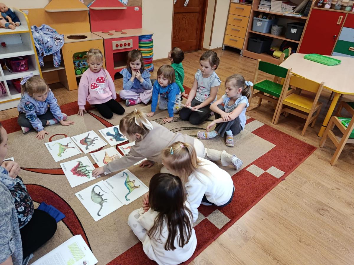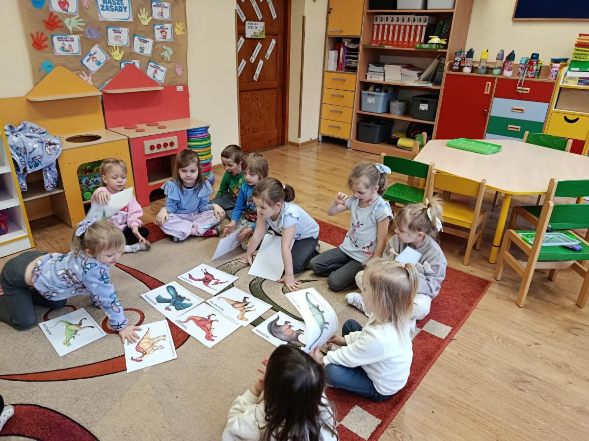 W ubiegłym tygodniu w naszym oddziale przedszkolnym realizowaliśmy fascynujący temat poświęcony dinozaurom. Dzieci z ogromnym zainteresowaniem poznawały różne gatunki prehistorycznych gadów, takie jak Tyrannosaurus rex, Triceratops czy Stegosaurus.