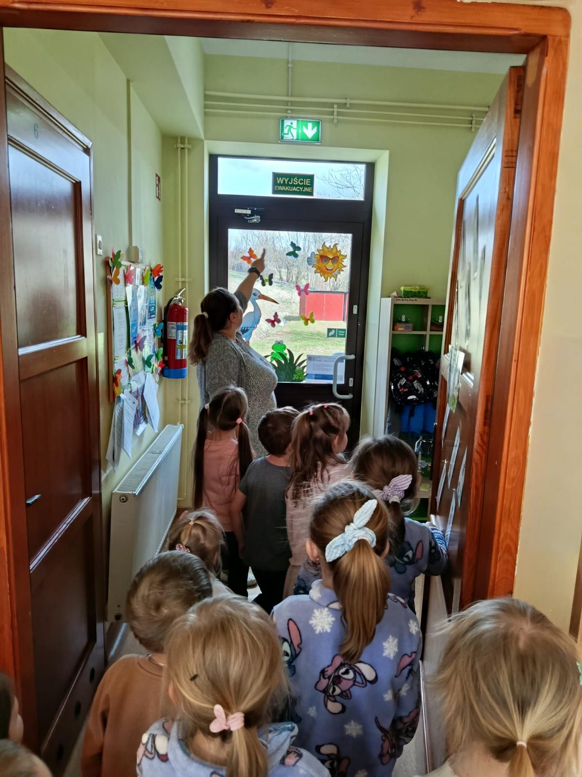 Bardzo ważnym elementem tego tygodnia była również edukacja dotycząca bezpieczeństwa. Dzieci dowiedziały się, jak należy zachować się w sytuacji pożaru – jak reagować, kogo wezwać na pomoc oraz jak ważne jest zachowanie spokoju. Poznały także drogi ewakuacyjne znajdujące się w naszej szkole i przećwiczyły ich bezpieczne wykorzystanie.