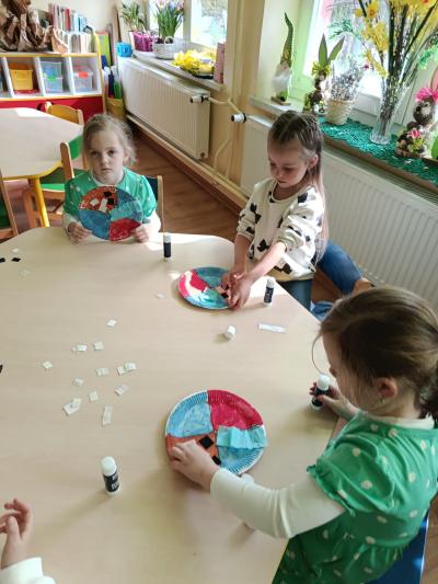 Na zakończenie tygodnia przedszkolaki wykonały prace plastyczne przedstawiające cztery żywioły. Każde dziecko mogło w twórczy sposób zaprezentować swoją wiedzę i wyobrażenia – powstały barwne, pomysłowe i bardzo ciekawe prace.