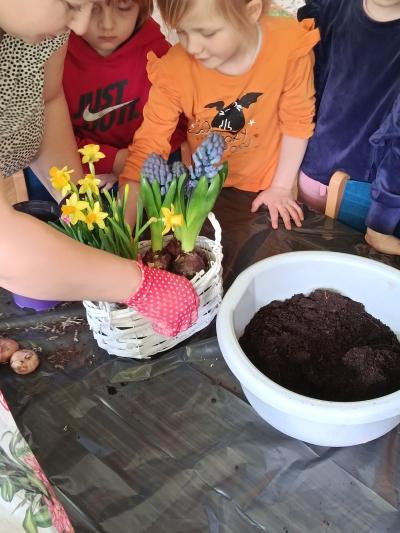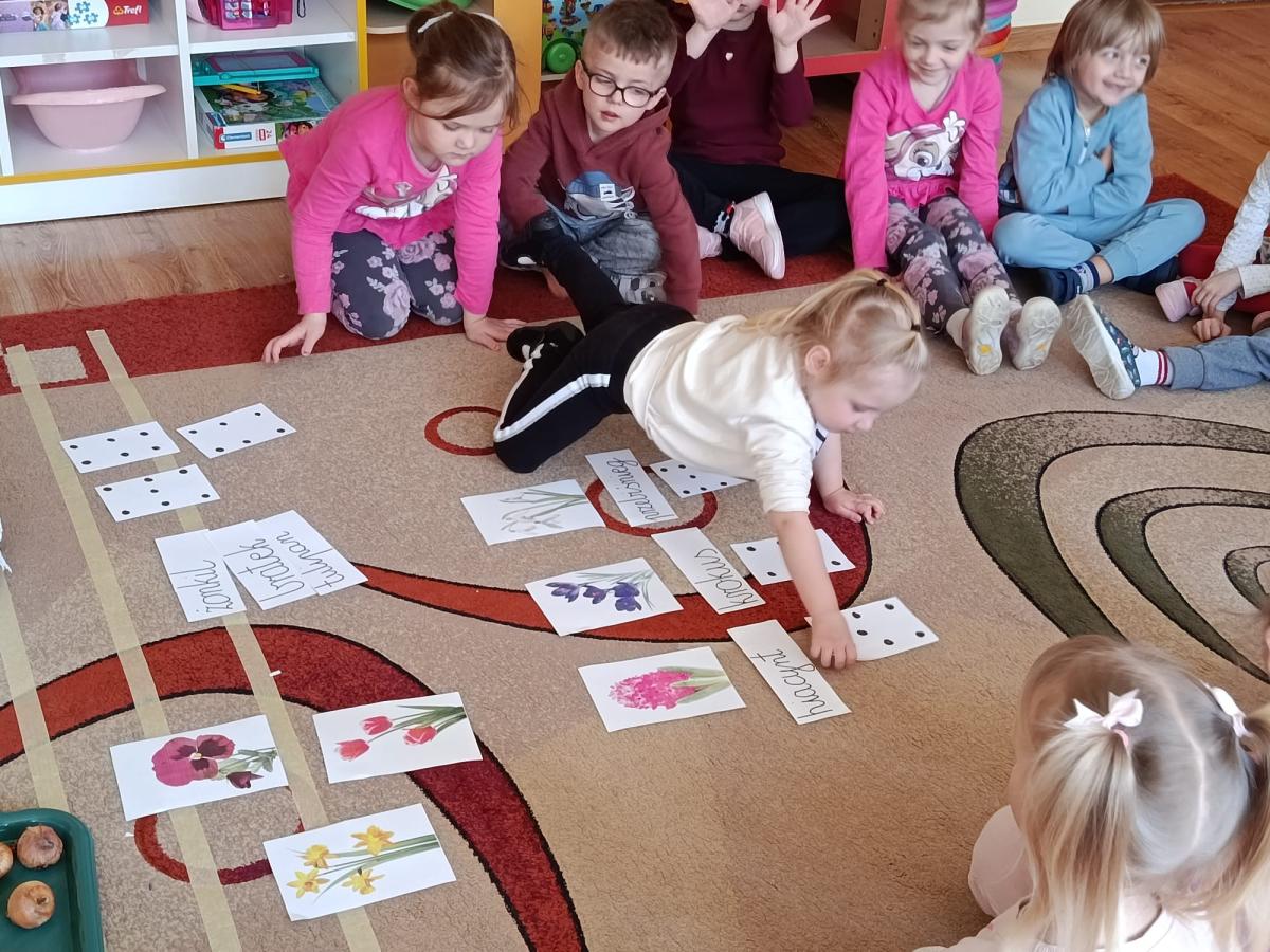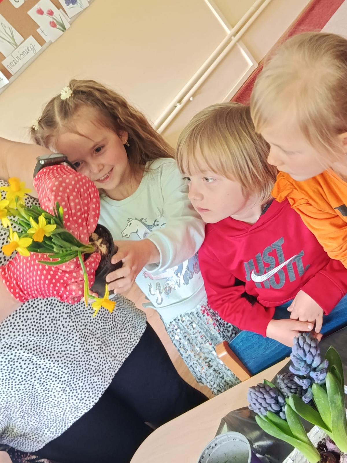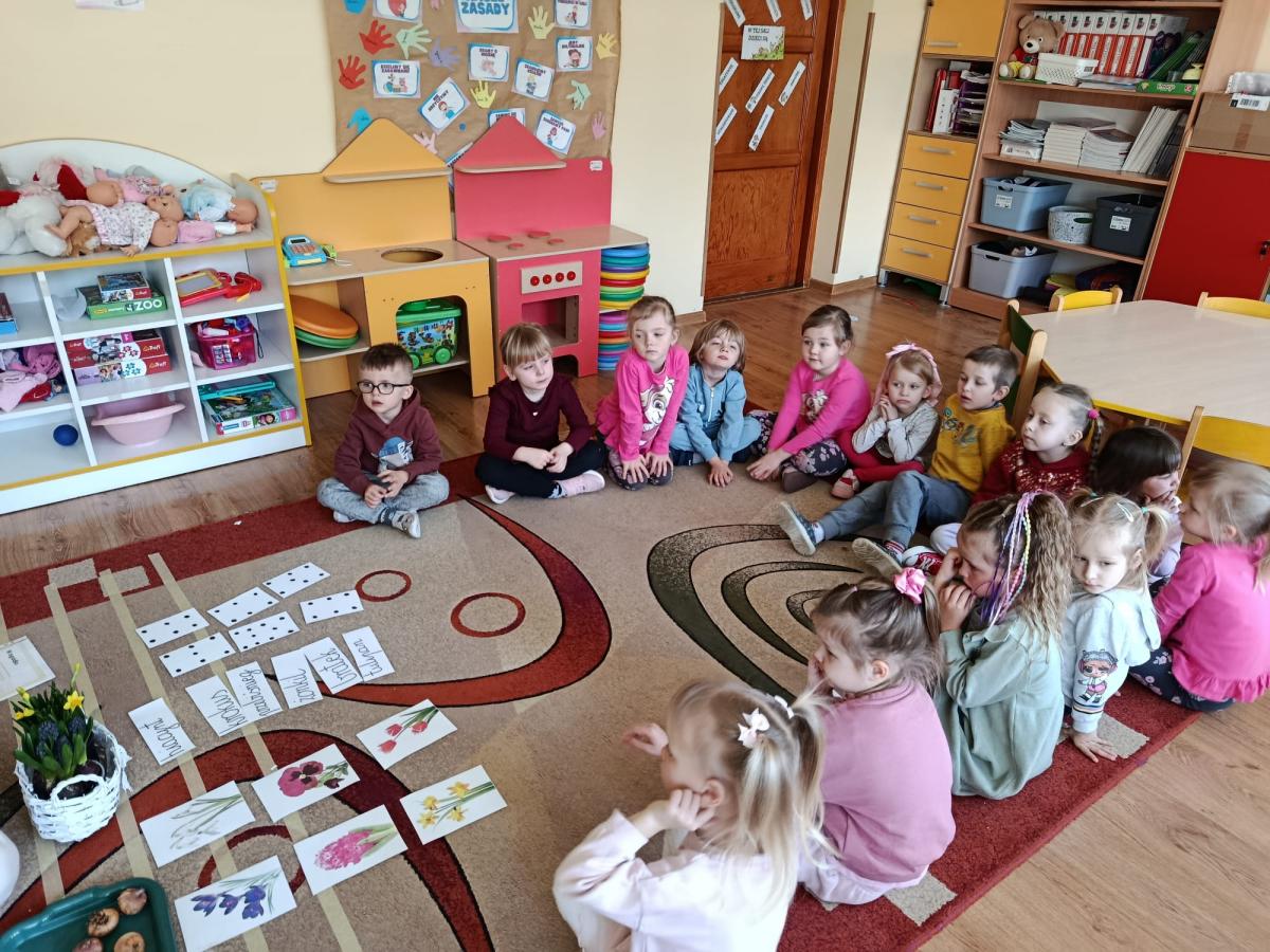 Nasze przedszkolaki z radością przygotowywały się na nadejście wiosny. Podczas wcześniejszych zajęć poznawały jej pierwsze oznaki oraz wiosenne kwiaty: hiacynty, żonkile, przebiśniegi, krokusy, bratki i tulipany.