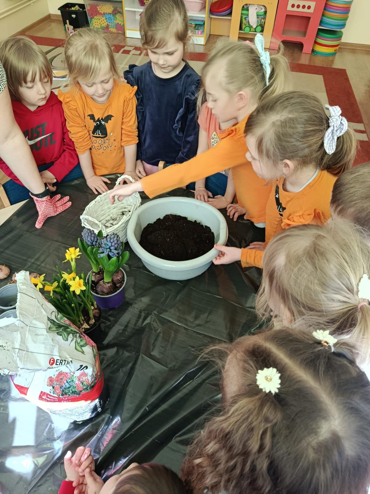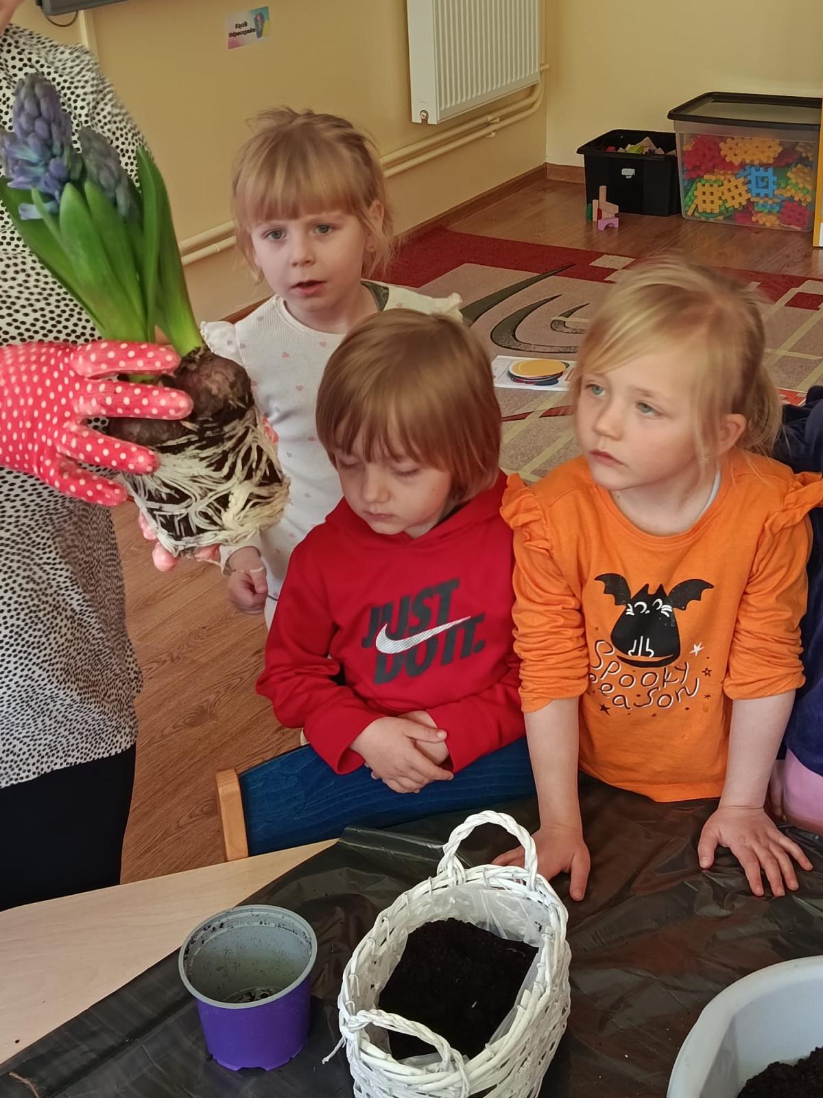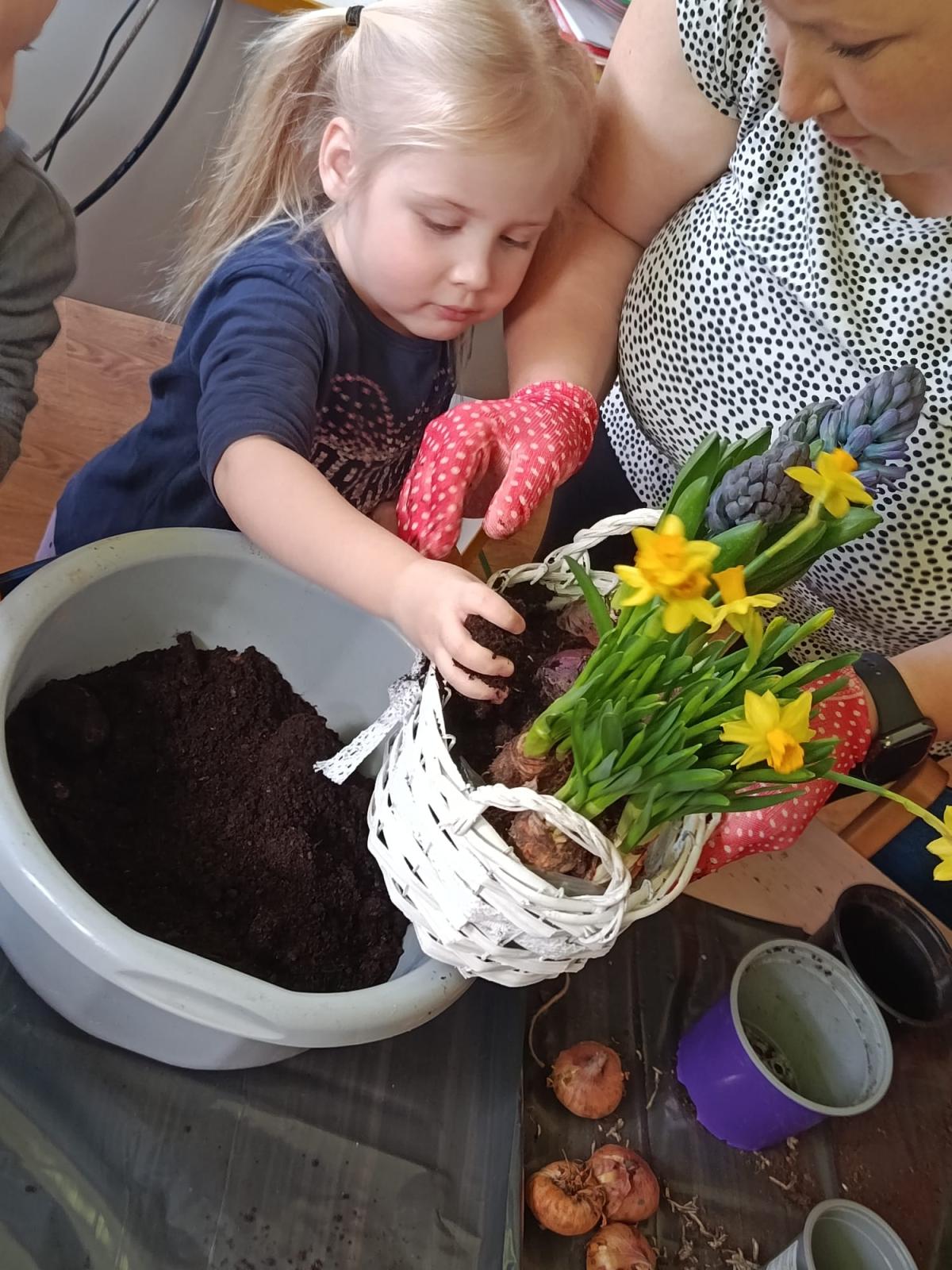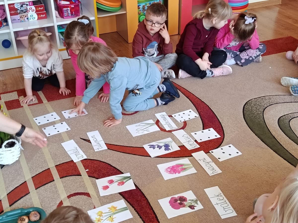Nasze przedszkolaki z radością przygotowywały się na nadejście wiosny. Podczas wcześniejszych zajęć poznawały jej pierwsze oznaki oraz wiosenne kwiaty: hiacynty, żonkile, przebiśniegi, krokusy, bratki i tulipany.