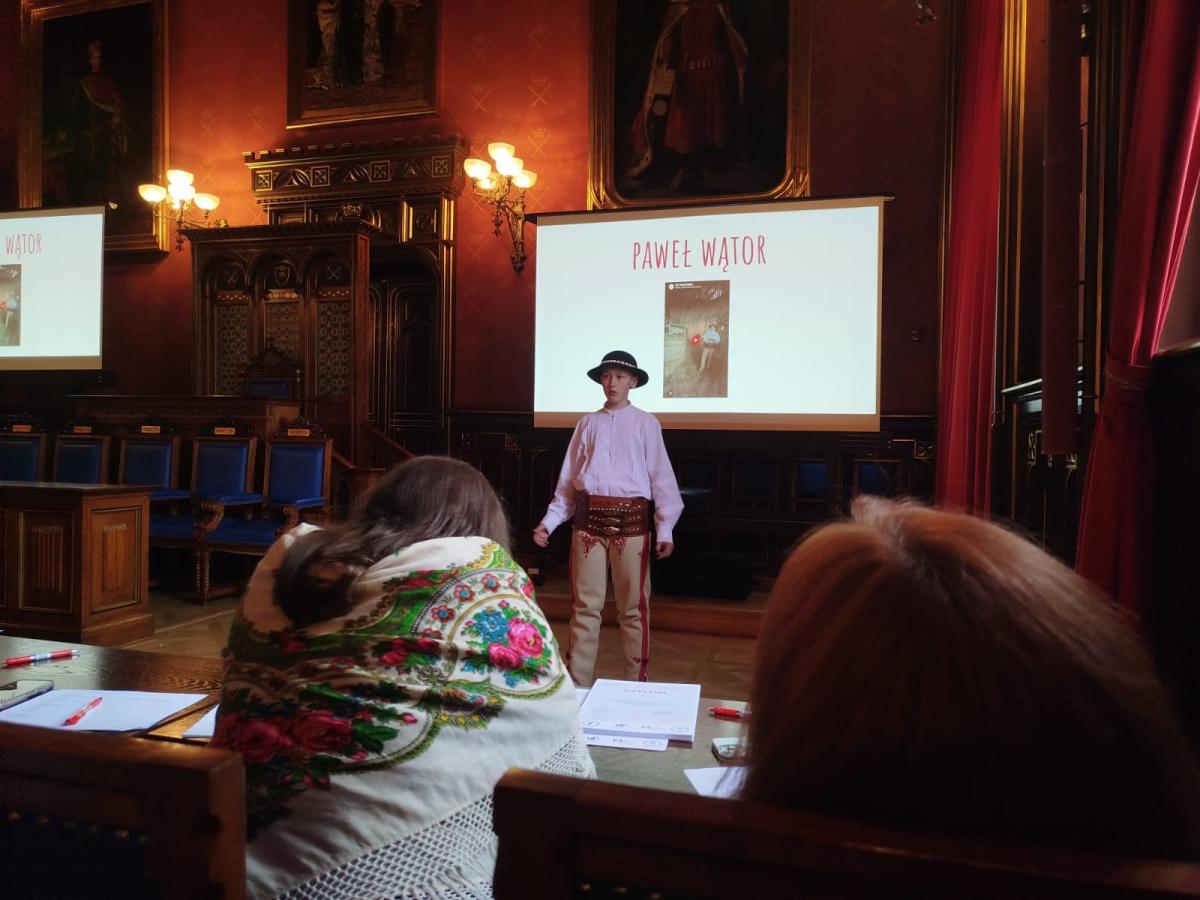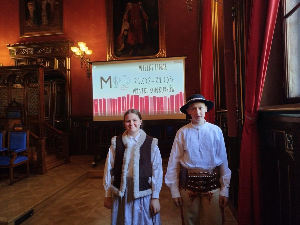 W sobotę 25 kwietnia obył się finał Konkrsu na Gadkę, organizowanego w ramach Miesiąca Języka Ojczystego. Naszą szkołę reprezentowało dwoje utalentowanych uczniów, którzy zaprezentowali się znakomicie na scenie finałowej: